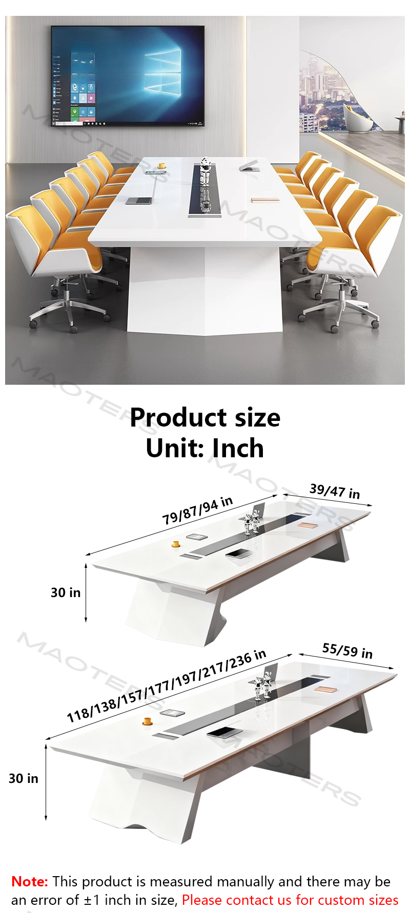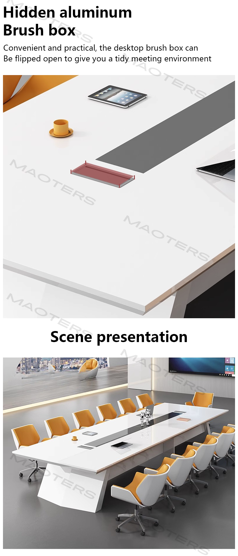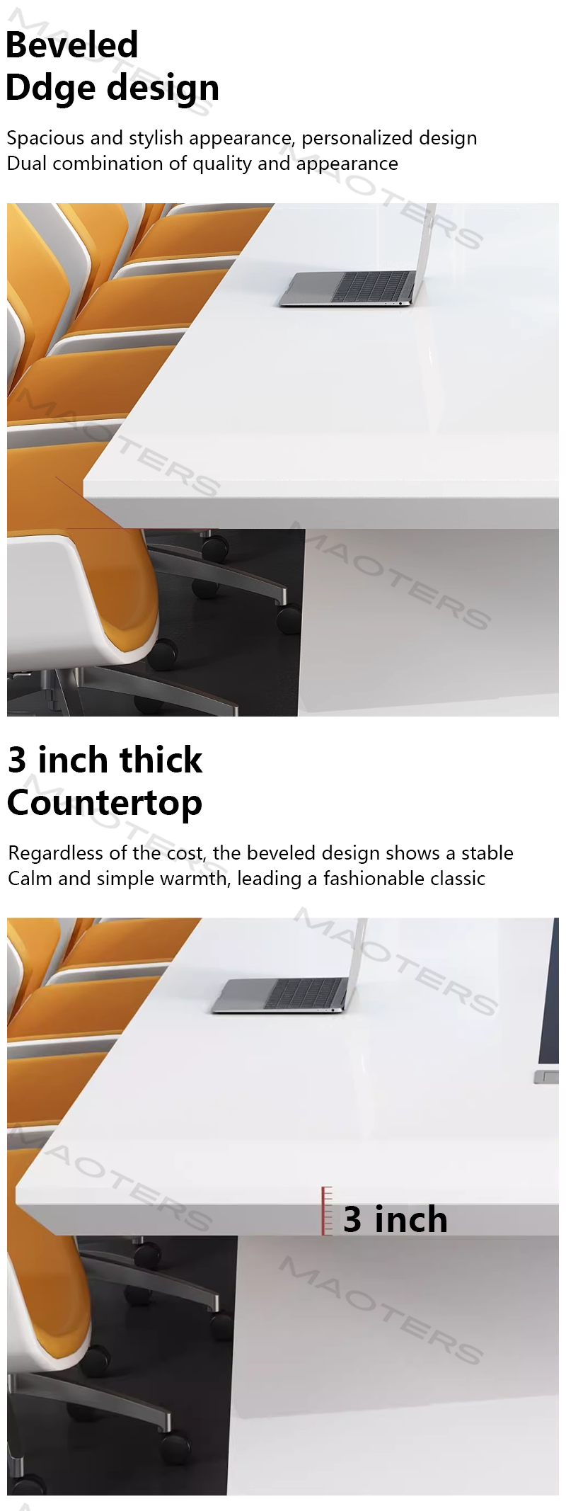 The conference table not only looks beautiful, but also has a very satisfactory overall effect. It fits the decoration style and has good quality. There are no defects or odors, the table top is smooth and delicate, and the touch is very good. It is functional and practical, and the details are well handled.