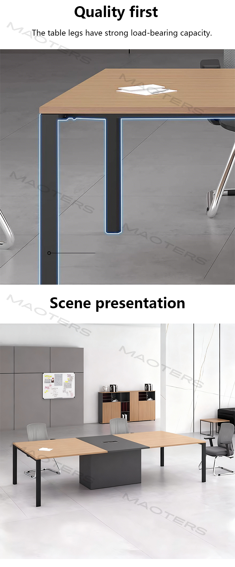 We use this as both a meeting table and a shared workstation. It transitions seamlessly between the two uses. Very practical and smartly designed.