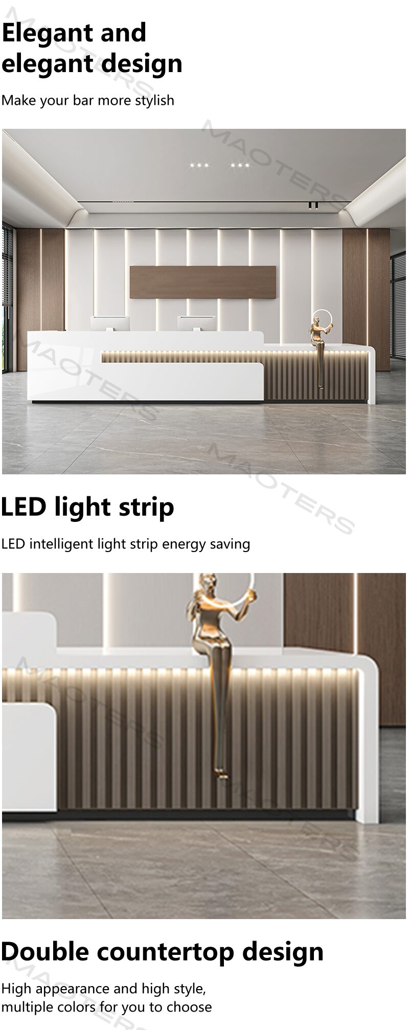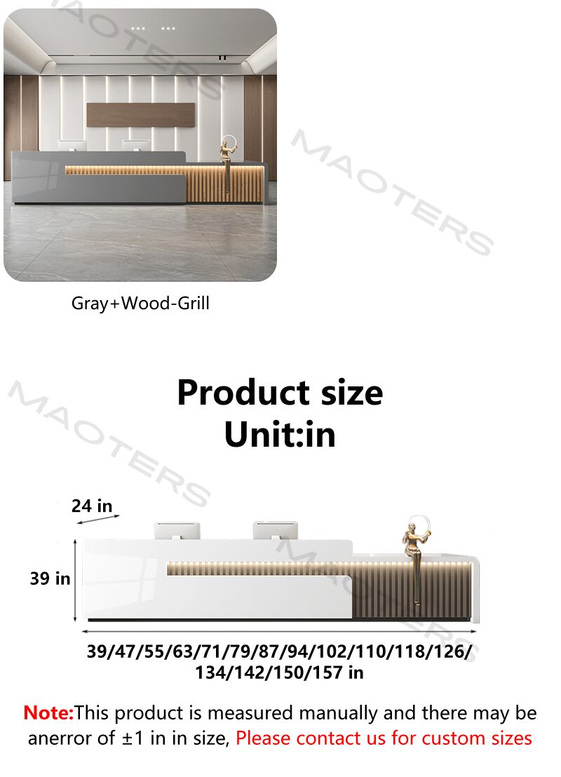 We understand that every project is unique. Therefore, we reject cookie-cutter production and offer comprehensive customization from concept to implementation:Personalized Design: Our team of designers will work closely with you to deeply understand your brand identity, spatial layout, and operational needs. Whether it’s the sleek lines of modern simplicity, the luxurious carvings of classic European style, or the rugged textures of industrial chic, we can precisely capture your vision.Superior Material Selection: We select premium materials from around the world, from the warmth of natural marble and solid wood to the modern styling of high-tech engineered stone, metal, and glass. We offer a wide range of materials and finishes to ensure your counters are both beautiful and durable, and easy to maintain.Balancing Functionality and Aesthetics: We skillfully integrate functionality into our designs. Concealed cable management, ergonomic staff workspaces, ample storage, and efficient lighting solutions enhance employee productivity while providing convenience and comfort for guests.Exquisite Craftsmanship: Inheriting the spirit of craftsmanship, we meticulously detail every detail. We ensure that every seam and every edge is flawless, and what we deliver to you is not just a piece of furniture, but also a trustworthy work of art.
