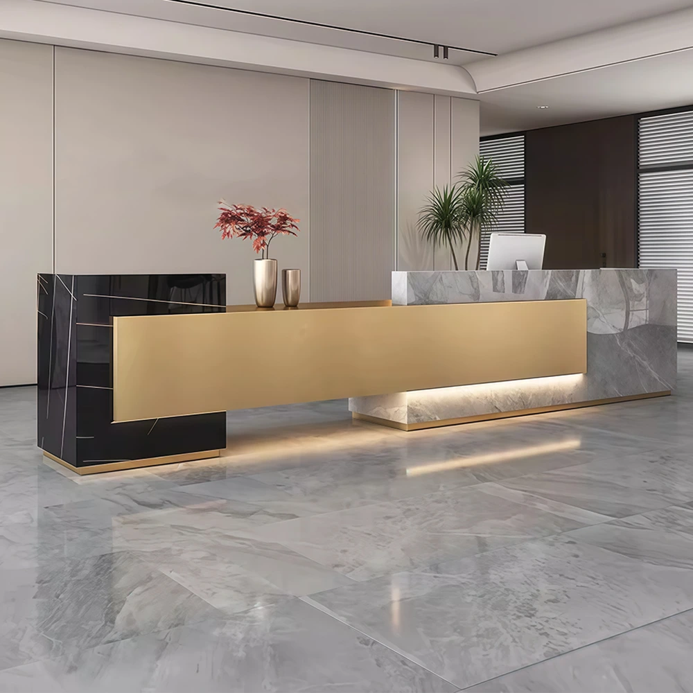 Luxury Marble Reception Desk with Stainless Steel Accents