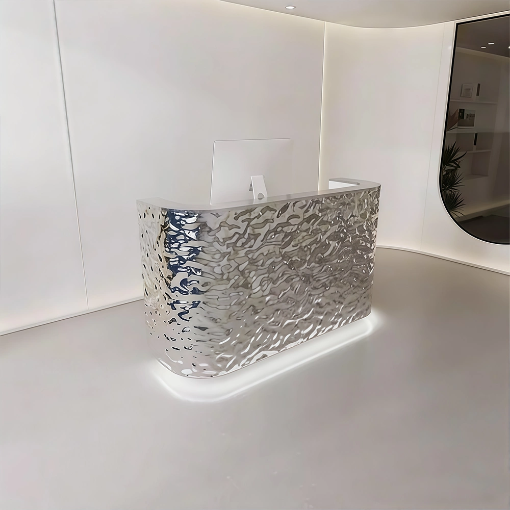Curved Wave-patterned Stainless Steel Reception Desk