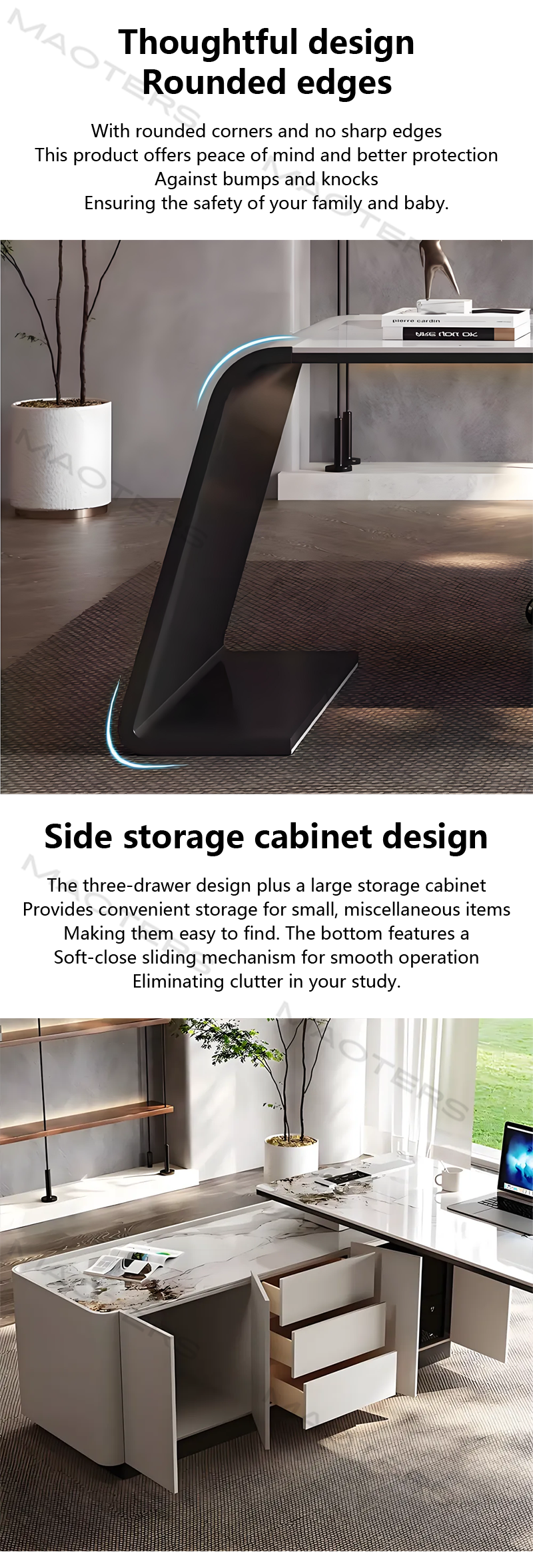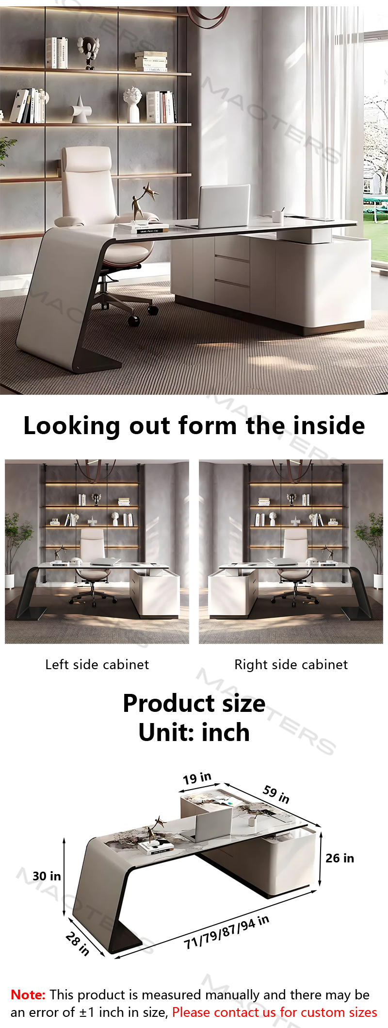 The Italian Rock Board surface offers a sleek, scratch-resistant finish that exudes luxury, while the robust construction ensures long-lasting stability. With its seamless corner design, this desk fits perfectly into any office layout—whether in a corporate suite, home office, or modern co-working space—enhancing productivity without compromising on aesthetics.