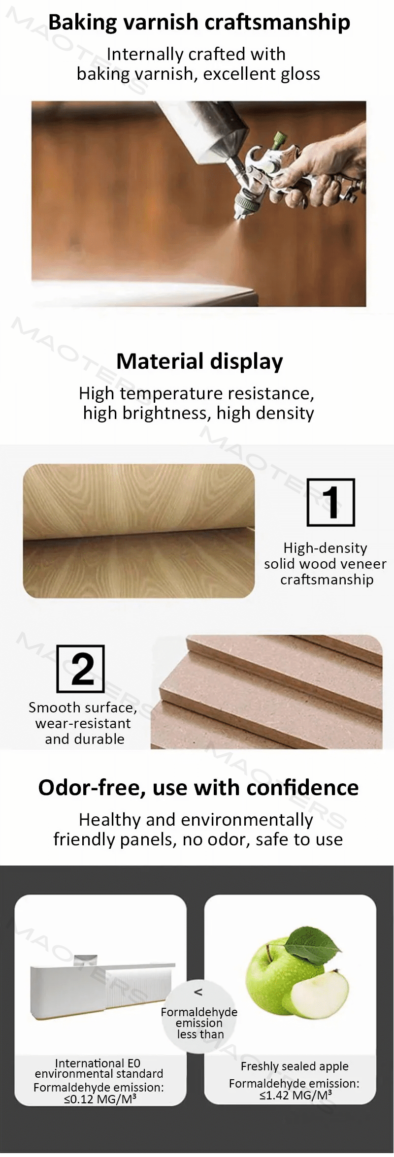 The Modern Simple Lacquered Reception Desk combines sleek, minimalist design with a luxurious lacquered finish, perfect for any modern office, hotel, or commercial reception area. Its clean lines and smooth, high-gloss surface create a sophisticated, welcoming atmosphere for guests and clients. Crafted from durable materials, this desk is designed to withstand daily use while remaining easy to maintain. With ample space for guest check-ins and organizational tasks, this desk is as practical as it is stylish. Customizable in size, color, and material, it can be tailored to fit your business’s unique needs and aesthetic.