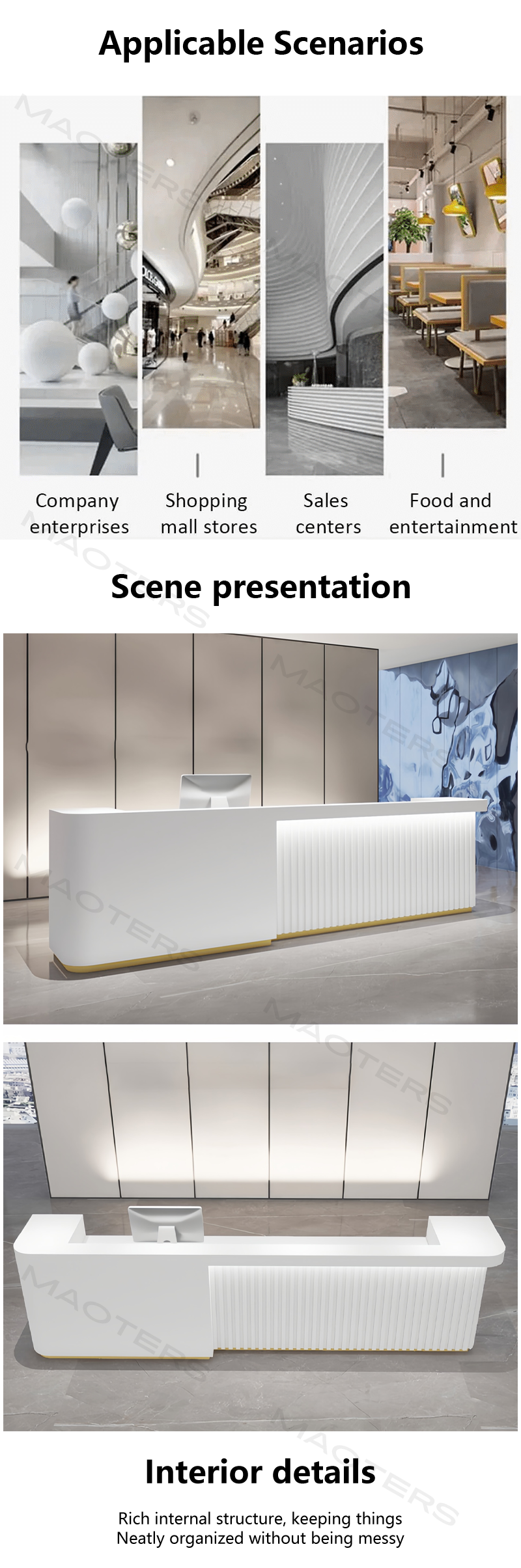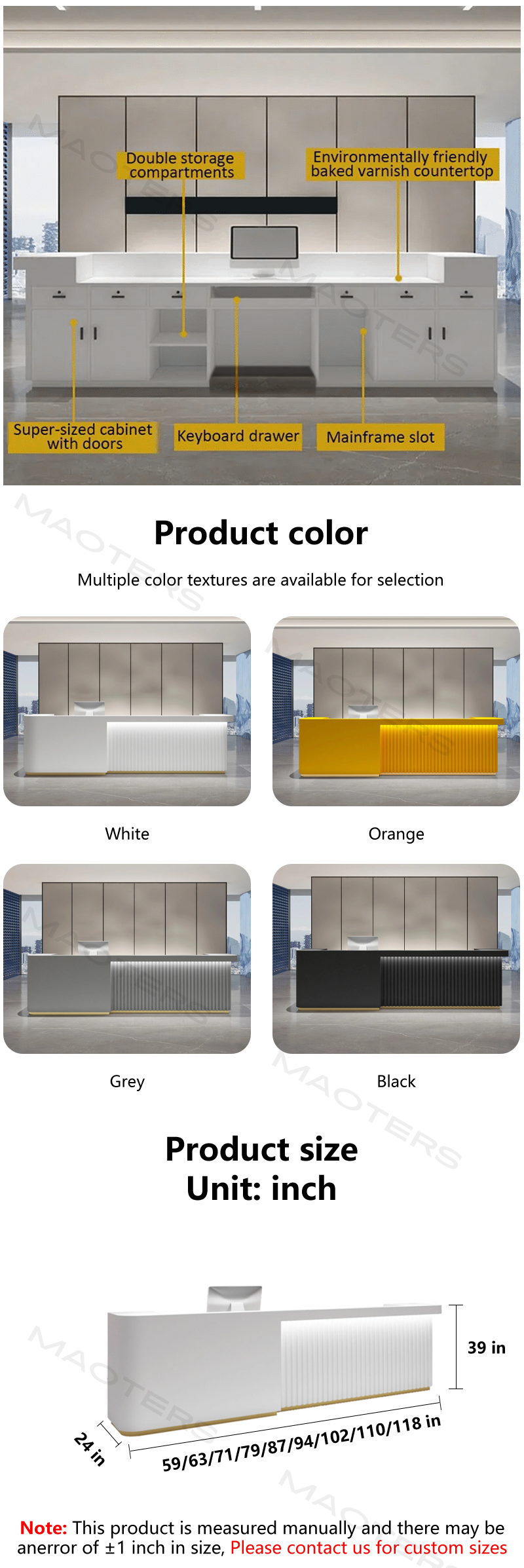 - Customizable Design – Available in various sizes, colors, and materials, allowing you to tailor the desk to perfectly suit your space and brand.