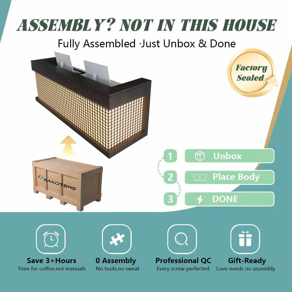 • For customized products (such as large conference tables, combined reception desks), Maoters provides free on-site installation services. After installation, the installation team will clean up the construction waste to ensure the office space is tidy.