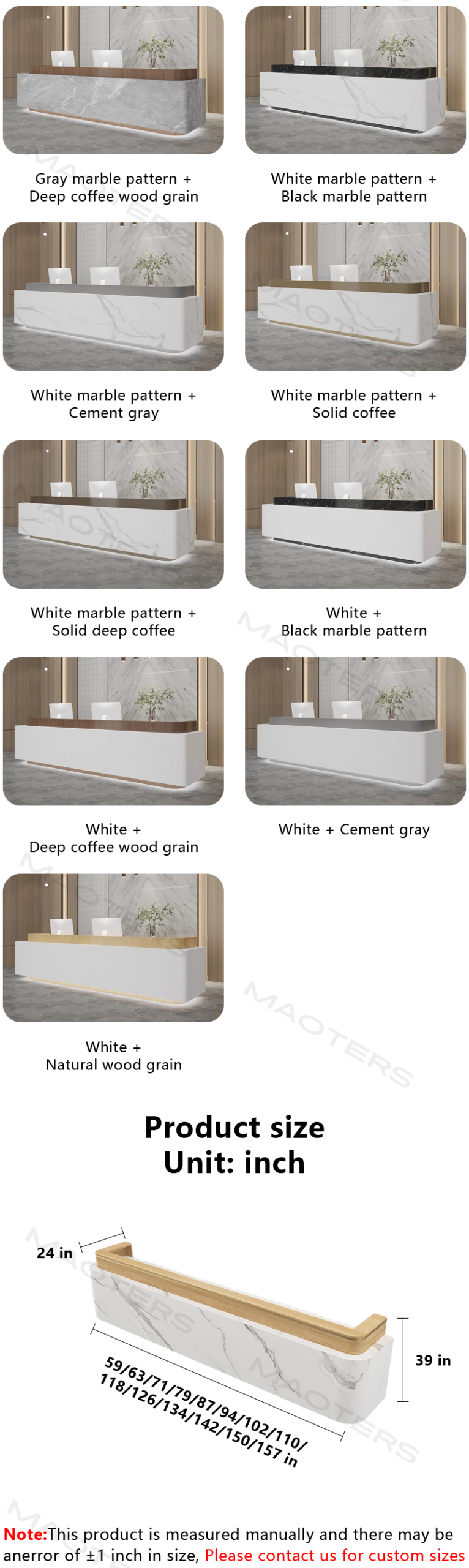 We just added this reception desk to our office,and honestly,it looks fantastic!The colors are perfectly coordinated,with no color difference whatsoever.The desk is very spacious,with plenty of room to put things.We're even considering placing some decorative items in a small section of the desk.It completely exceeded my expectations.I'm extremely happy with this purchase!I will definitely recommend it to my friends.