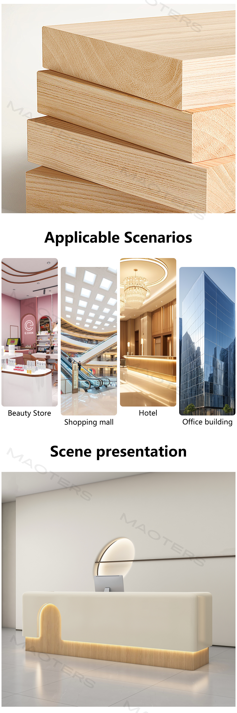 The perfect height ensures comfortable and private consultations and interactions with clients. The thoughtfully planned layout provides ample space for booking appointments, displaying service options, and elegantly completing the checkout process.