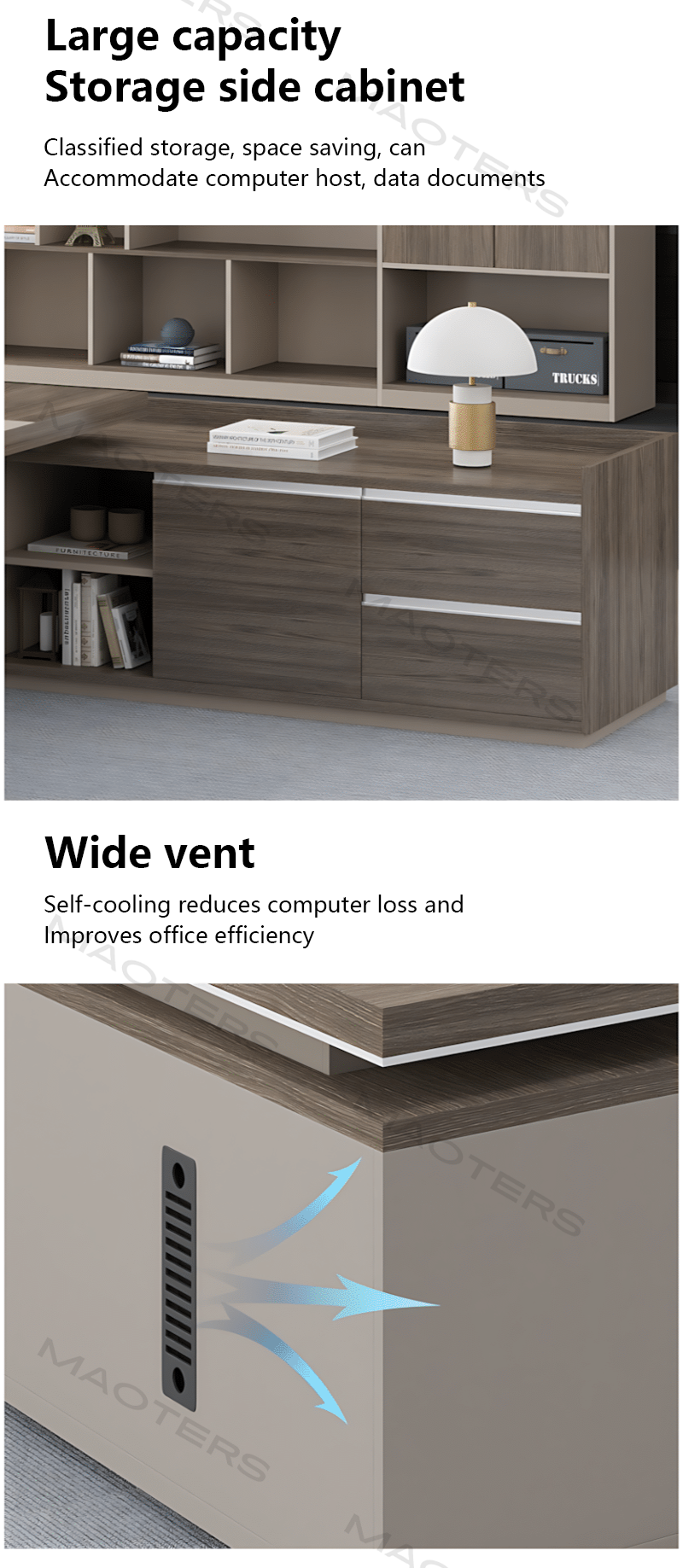 The quality is really good. The material is solid and stable. The color of the desk is also very beautiful. The design is user-friendly. The storage space of the side cabinet is OK. The material is thick and durable, which is really eye-catching.