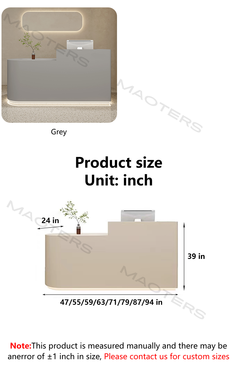 I just received the reception desk,and its appearance surprised and delighted me;it's fantastic.The desktop is spacious, providing ample workspace.The size perfectly suits my needs.This purchase was definitely excellent value for money.