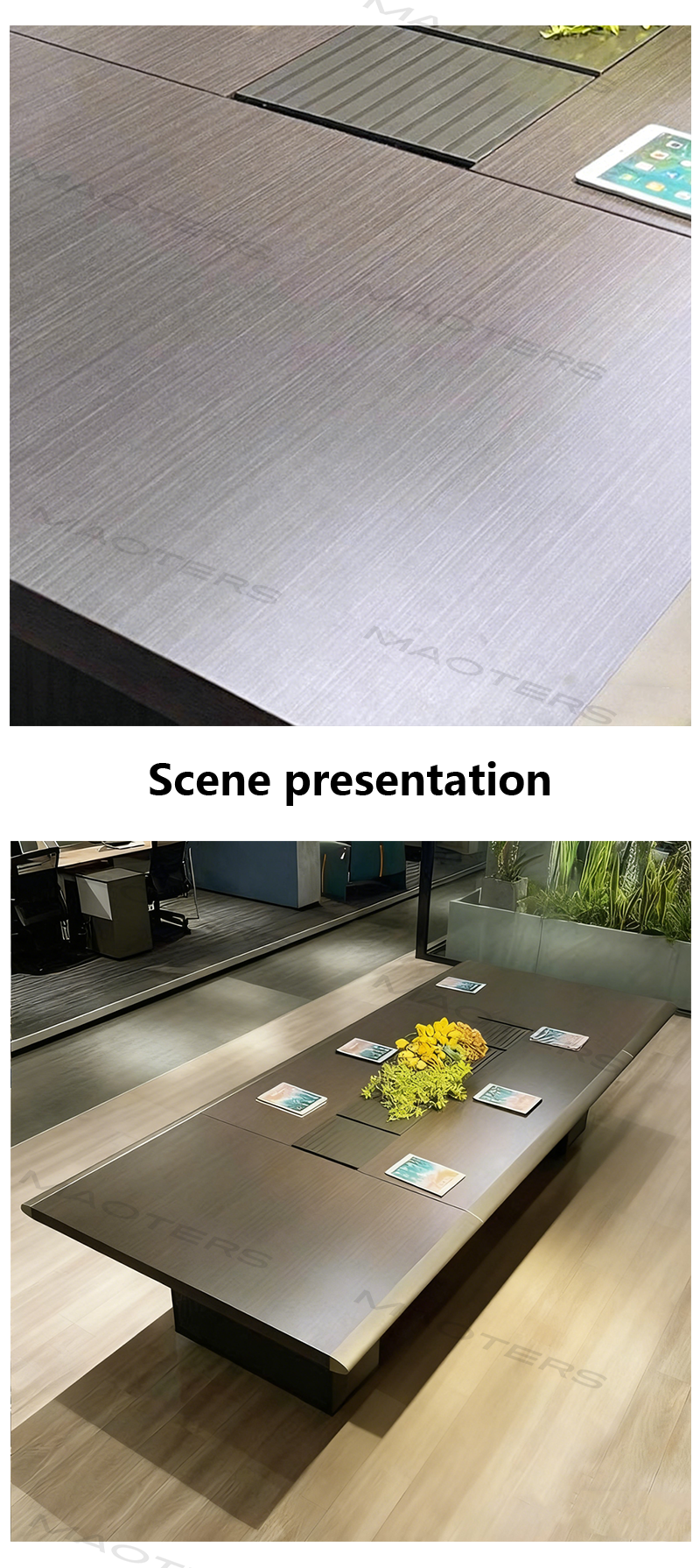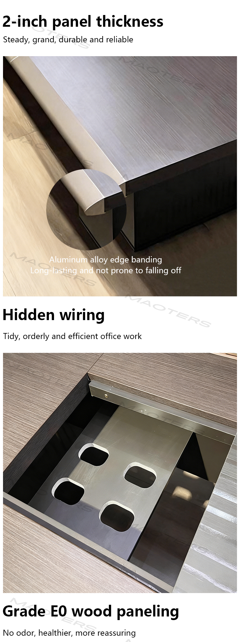 Integrated Cable Management: Hidden cable channels and pop-up ports are located on the desktop edge or in the center, easily accommodating power and data cables, keeping the desktop absolutely tidy and technologically advanced.