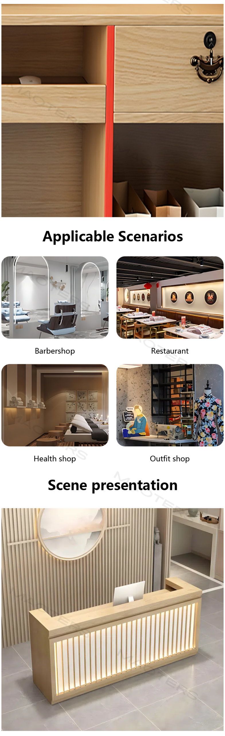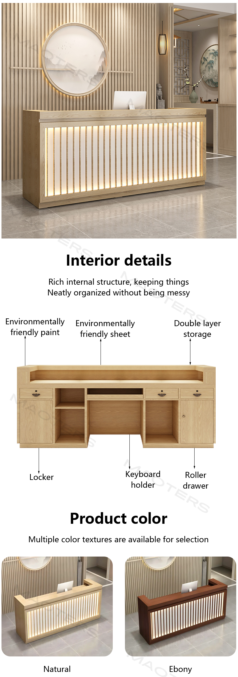 Elegant Vintage Design: Featuring intricate carvings and a rich wood finish, this desk brings a classic Chinese aesthetic to your reception area, creating a warm, welcoming environment.