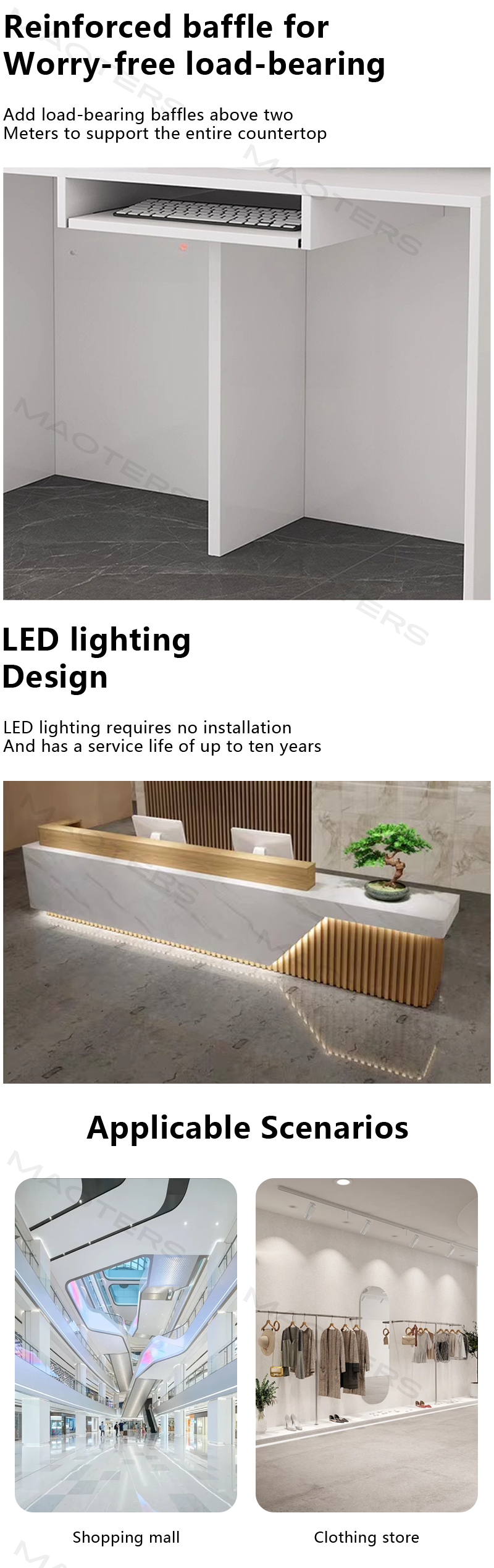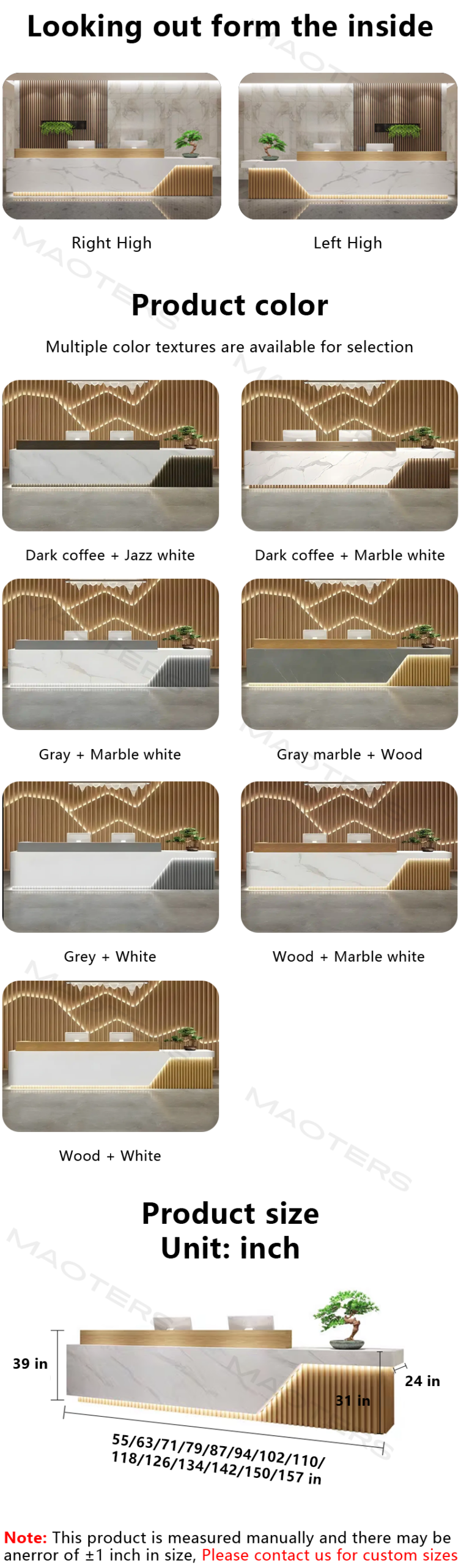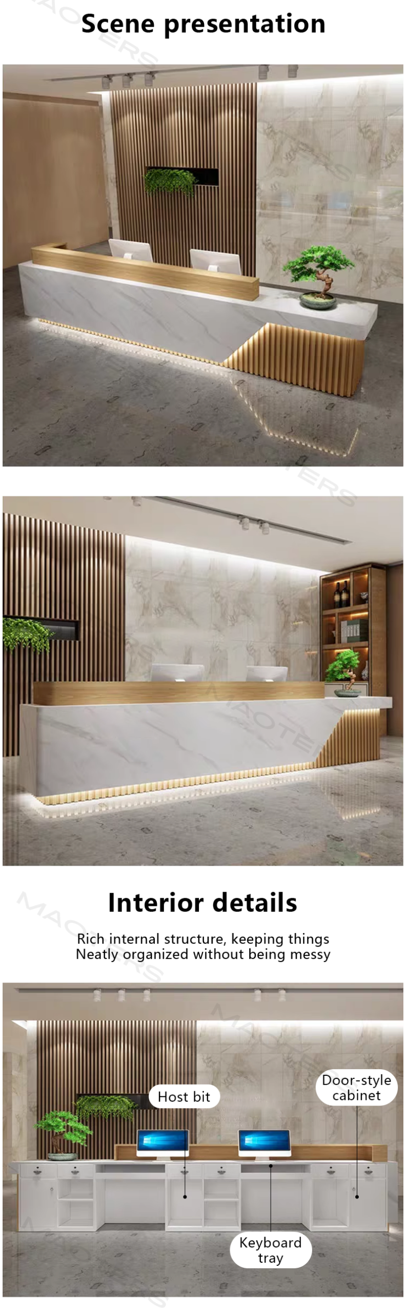 This reception desk has a very stylish design,which my team leader loves.It matches our office style perfectly,and visitors have all complimented it.The quality is also excellent;the desktop is spacious and sturdy.