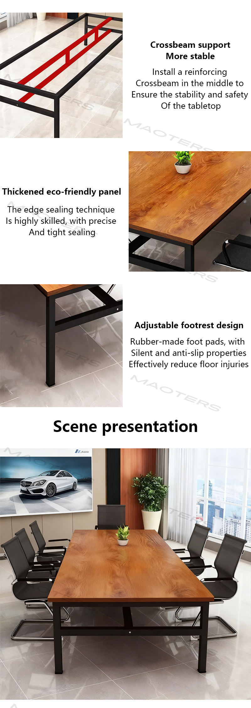 The tabletop finish is super smooth and easy to clean. It's long enough for all team members to comfortably take notes or present ideas during meetings.