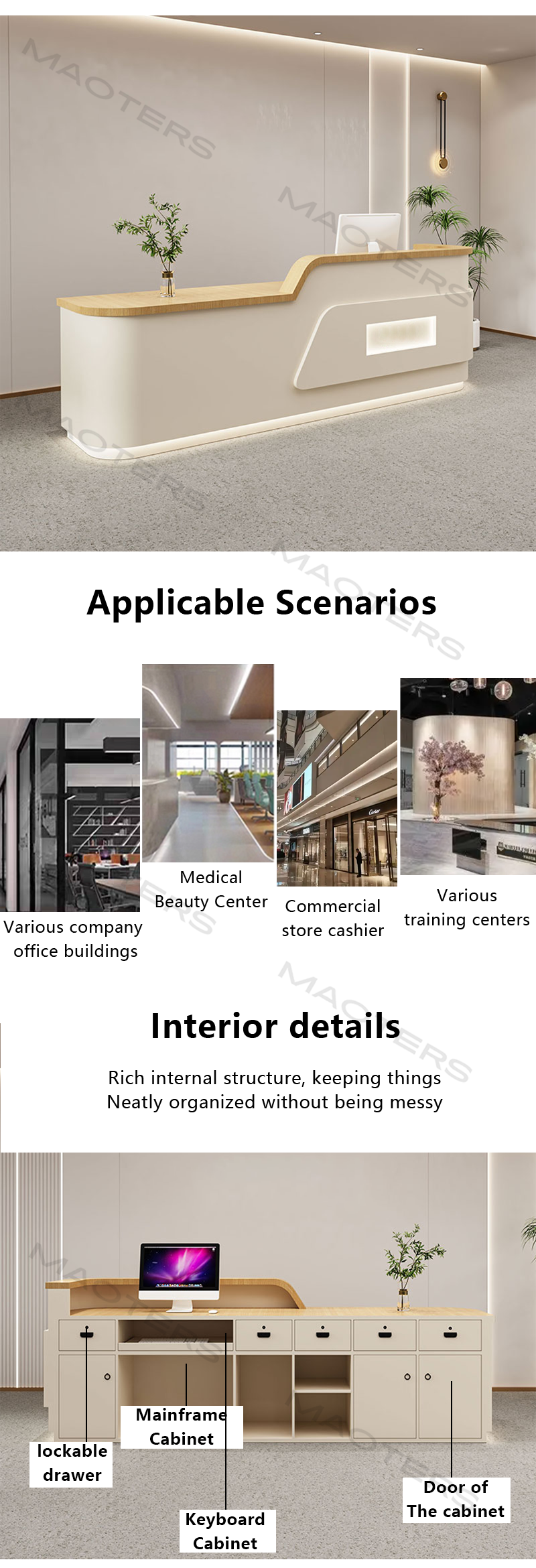 Ideal for training centers, boutique shops, consulting offices, and creative studios, this reception desk combines aesthetic flexibility with everyday usability. Let the Cream Style Reception Desk elevate your space with its understated elegance and functional design.