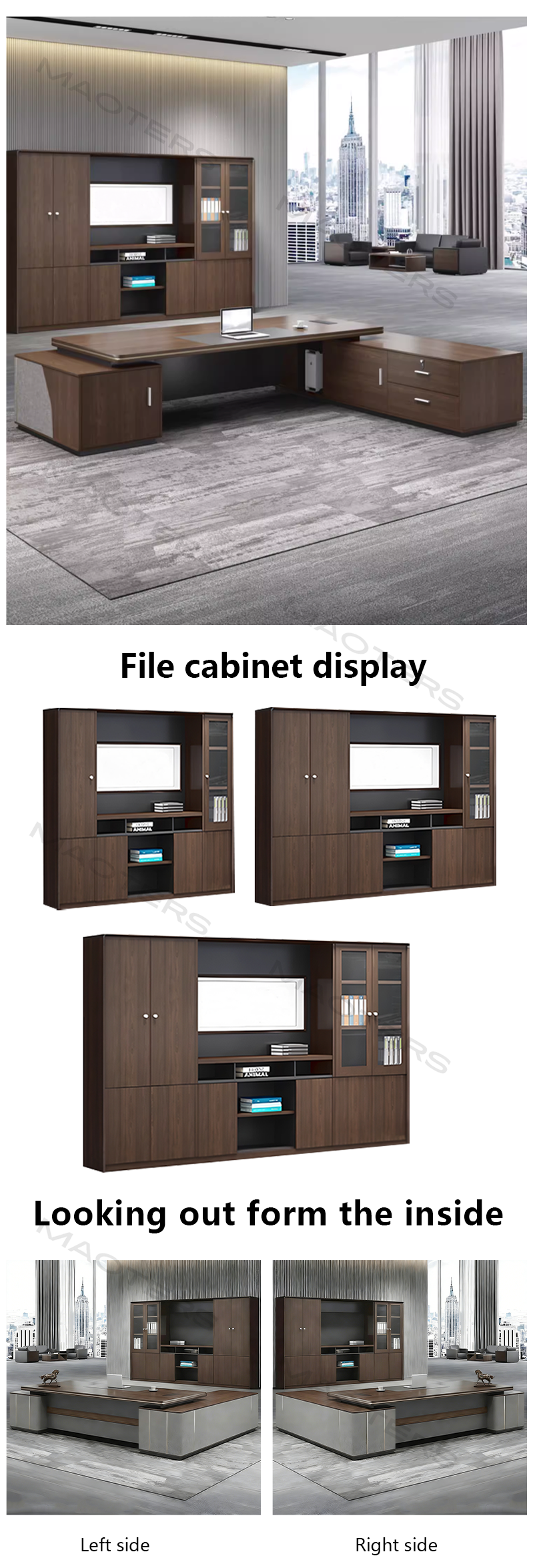 I love the side cabinet on this desk! It's large and spacious, which is perfect for storing all my office equipment. The storage doesn't compromise on style either - it looks sleek and professional.