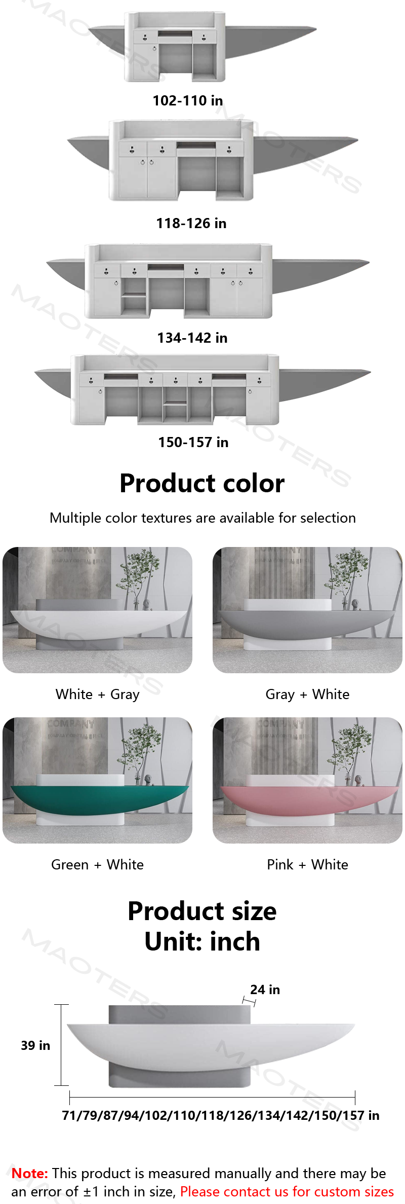 - Unique & Artistic Design – A creative, bold shape that adds personality and style to your reception area.
