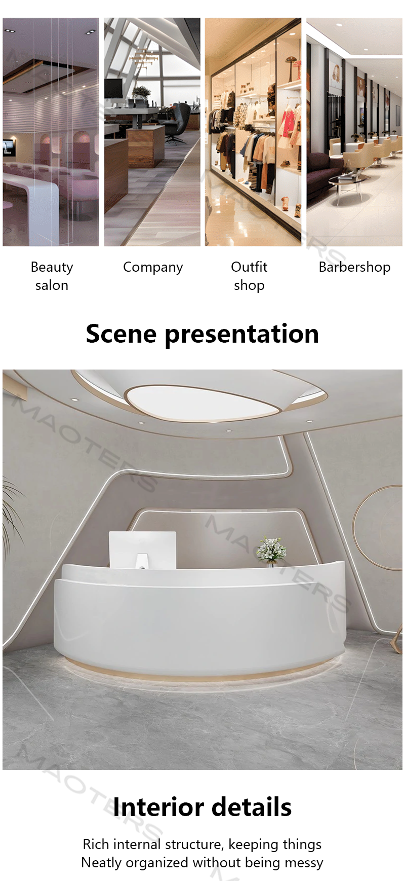 The Curved Beauty Salon Bar Counter is a stunning blend of elegance and practicality, designed to enhance the ambiance of any beauty salon, spa, or wellness center. Featuring a sleek, curved design, this counter creates a welcoming atmosphere while offering plenty of space for reception duties and customer service. Its smooth, high-quality surface is perfect for organizing beauty products, tools, and accessories, ensuring your salon remains tidy and professional. Available in a variety of finishes, this counter adds a touch of luxury to your salon’s decor while providing durability and ease of maintenance for long-lasting use.