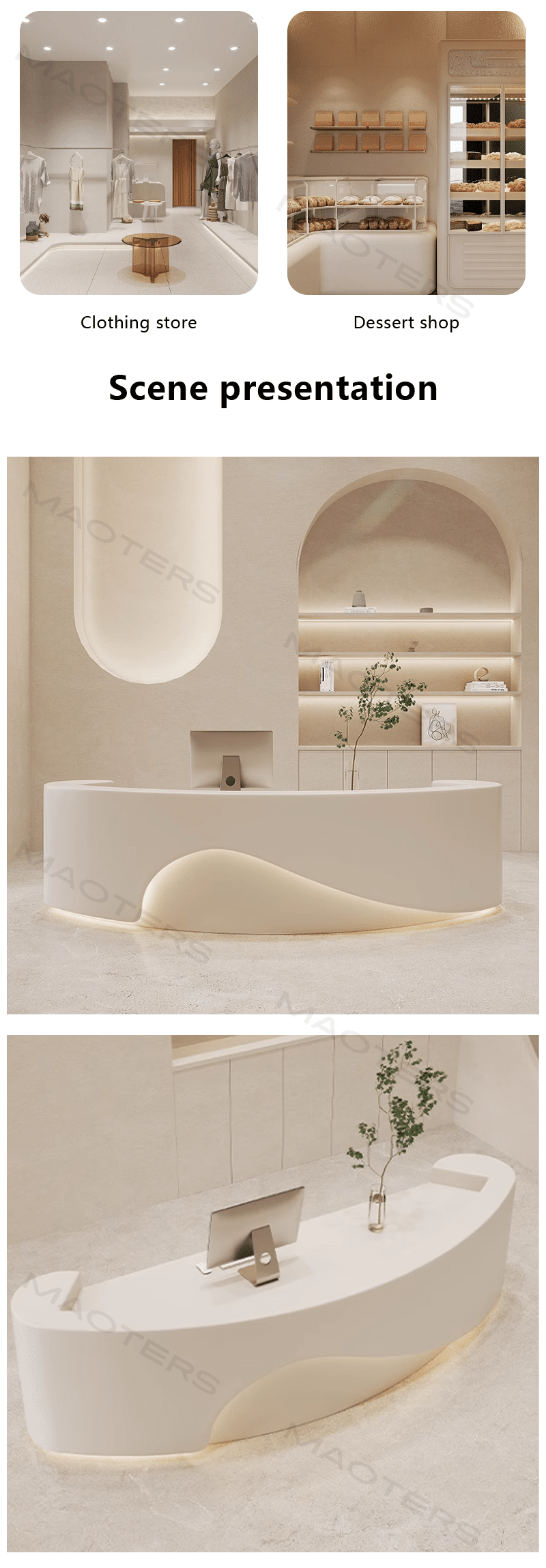 Key Features: ✔ Sleek, Contemporary Design – Adds a sophisticated touch to any interior. ✔ Space-Saving Curve – Maximizes flow and accessibility in busy settings. ✔ Premium Build Quality – Available in wood, laminate, or high-gloss finishes. ✔ Versatile Use – Perfect for reception areas, coworking spaces, or luxury boutiques.