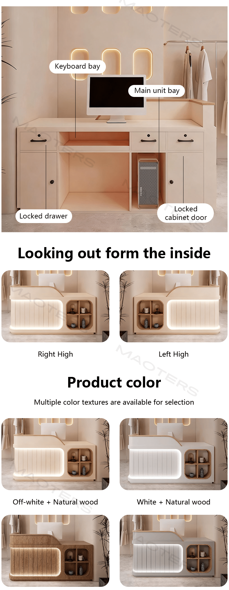 - Space-Saving Corner Design – Maximizes available space while offering a functional workstation for customer service and administrative tasks.