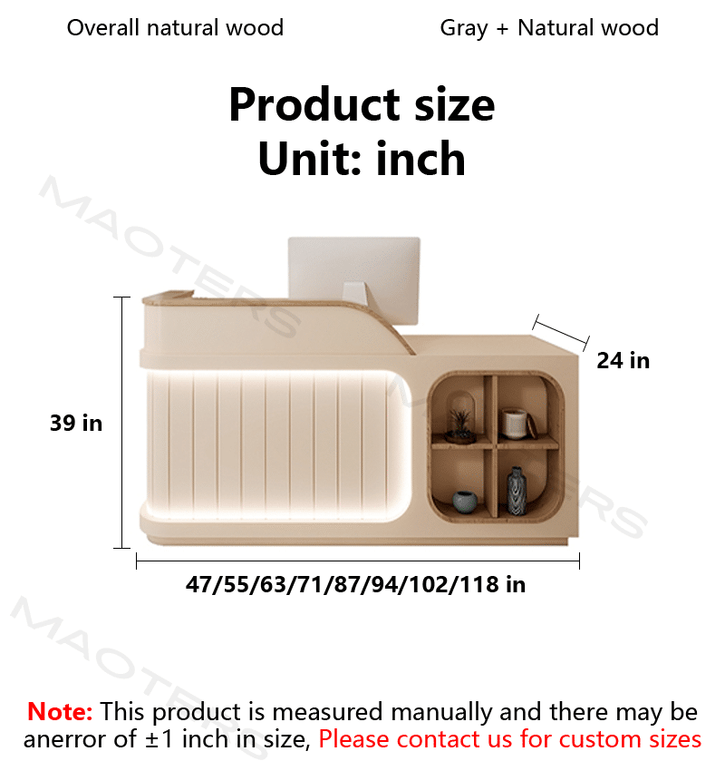 - Built-In LED Lighting – Adds a modern touch and enhances the reception area’s ambiance, making it inviting and professional.