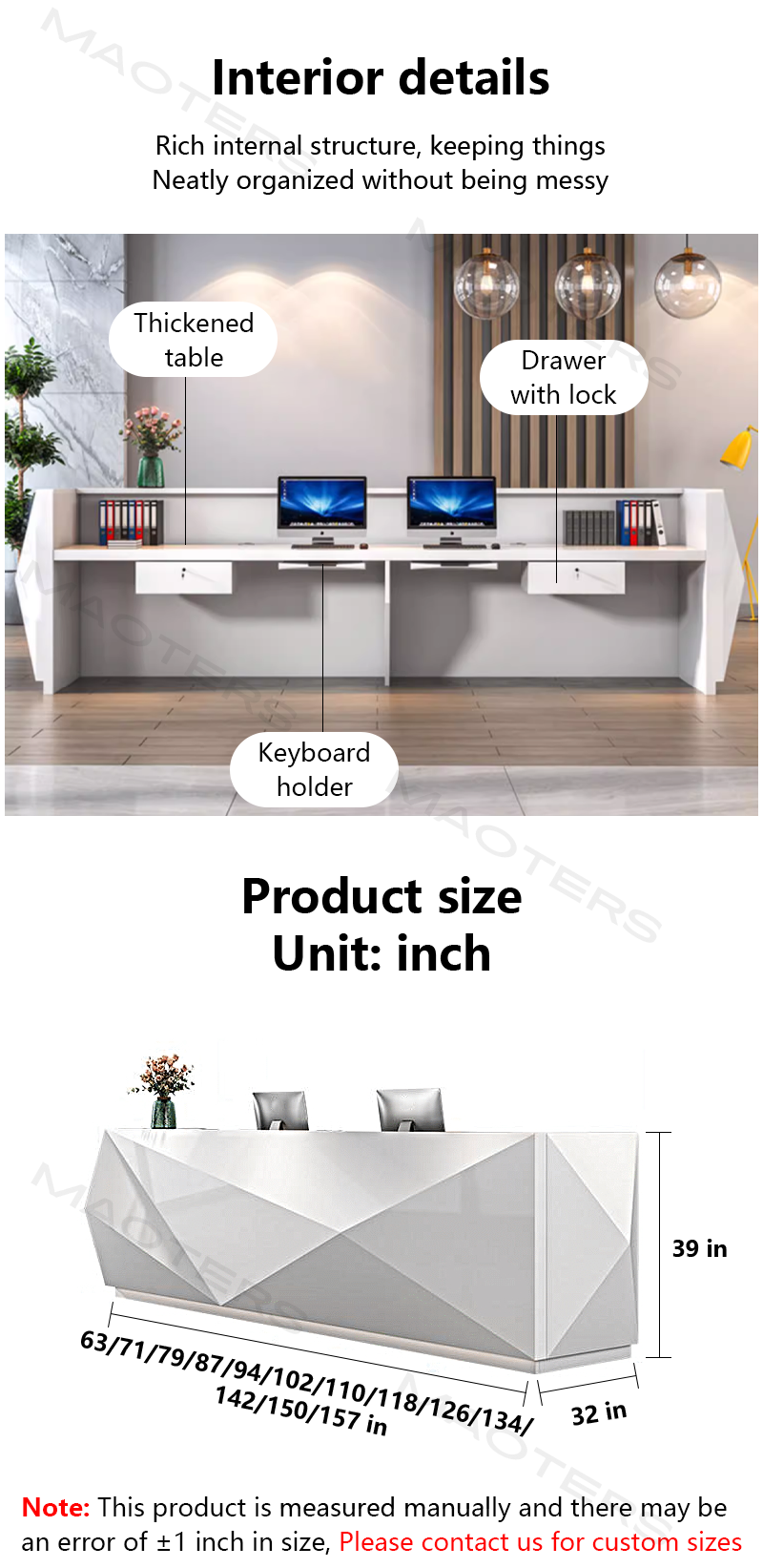 - Spacious & Functional – Offers a practical, organized work surface for handling reception tasks and customer interactions.