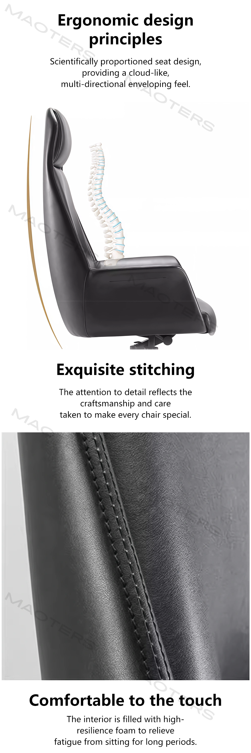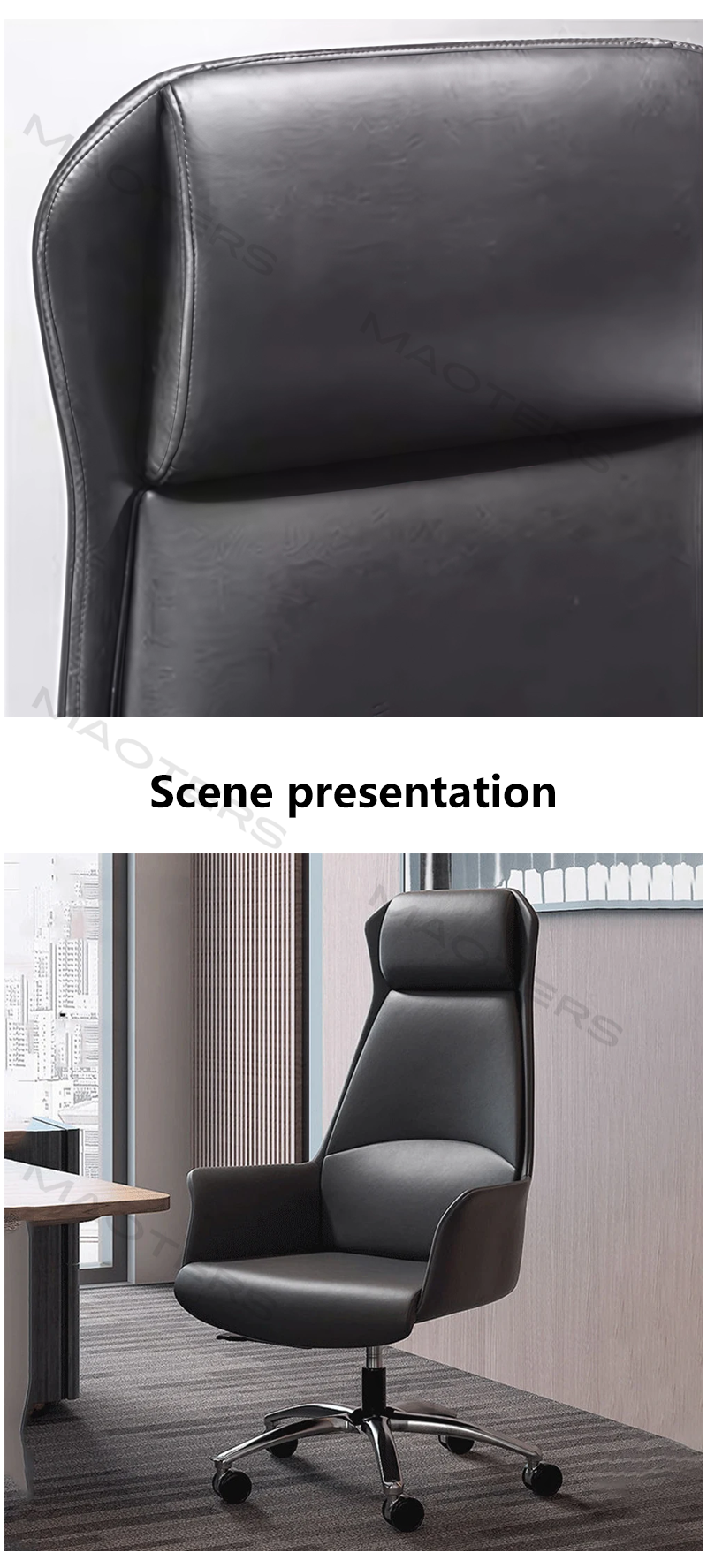 Exquisite Craftsmanship and Attention to Detail: From stitching to edging, every detail reflects meticulous craftsmanship. The classic, stable lines, paired with a metal or premium wood veneer base, seamlessly blend into the authoritative atmosphere of an executive’s office.
