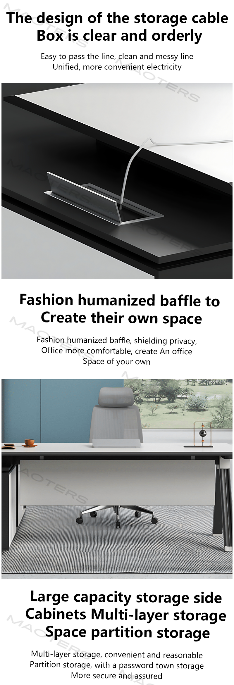 This customization service is exclusively applicable to three core office furniture categories of Maoters, aiming to meet the personalized functional and aesthetic needs of different office spaces: