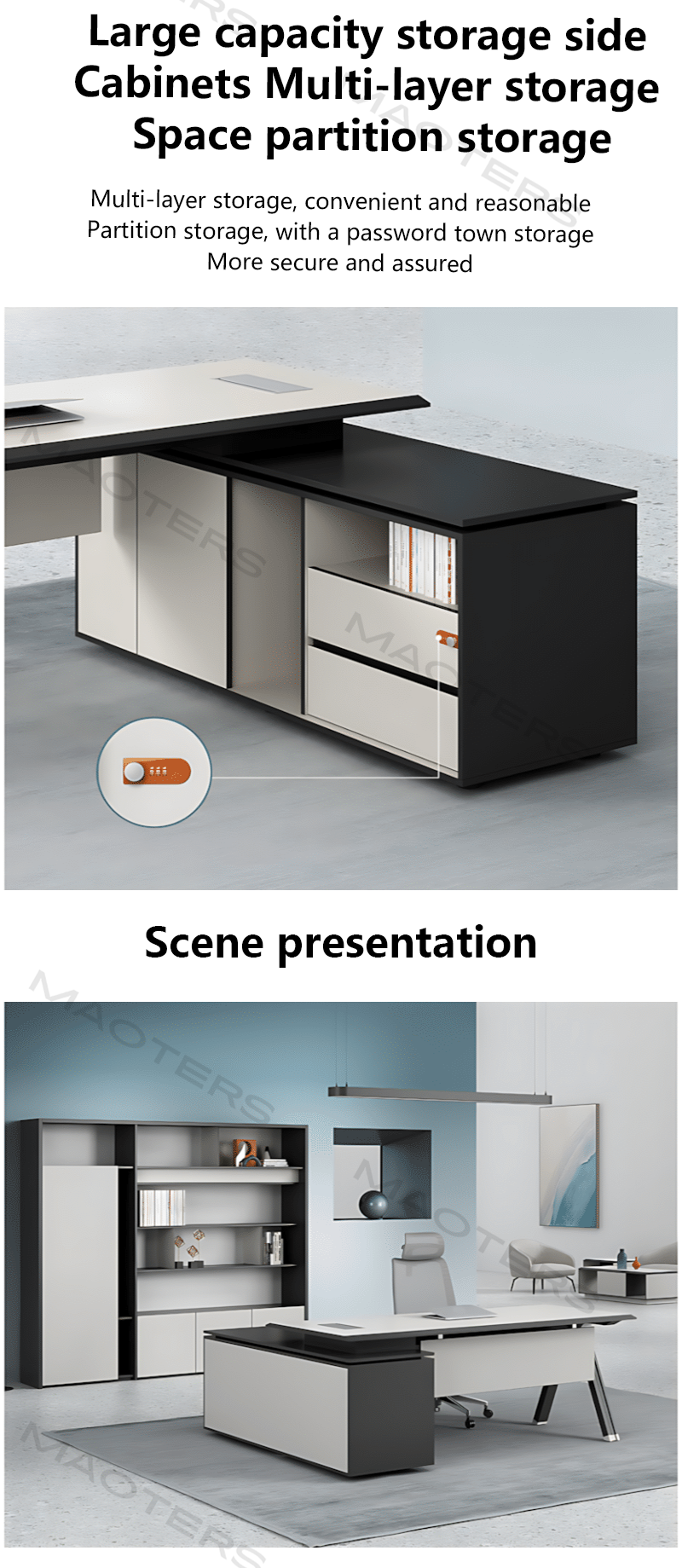 Elevate your office aesthetic with our Executive Office Computer Desk, where contemporary design meets professional functionality. This sleek and modern desk is crafted for today’s dynamic work environment, offering a perfect blend of style, durability, and workspace efficiency.