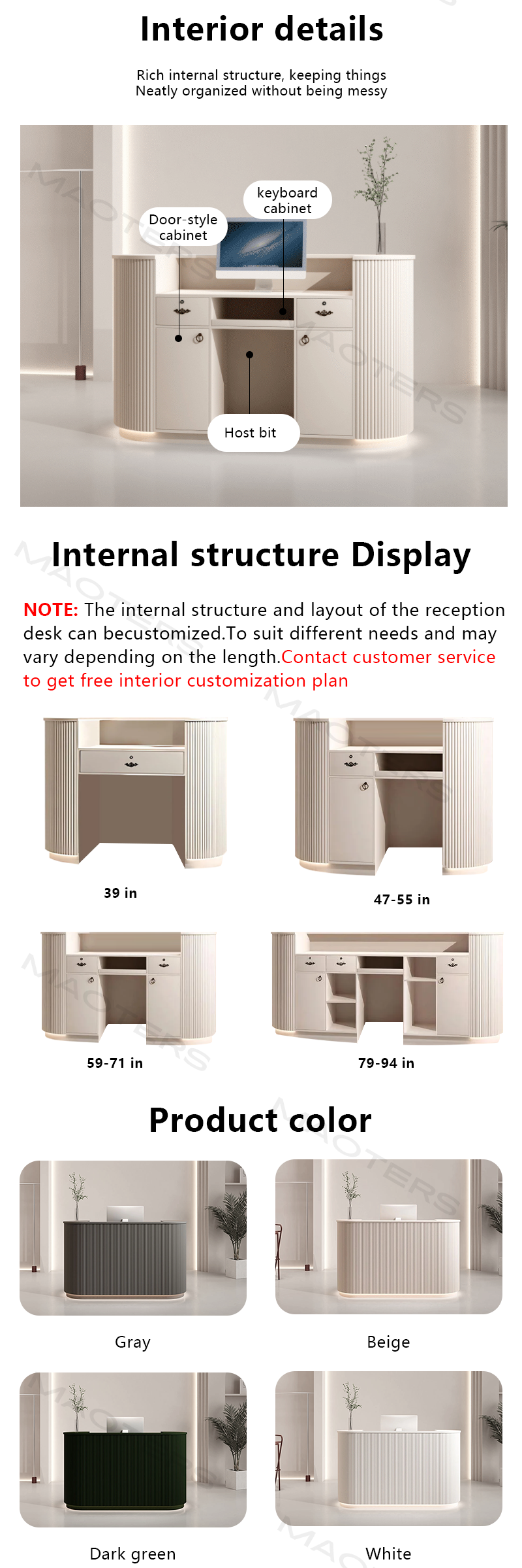 I absolutely love this reception desk.The custom size is perfect-it's so convenient for placing documents.The customer service is also fantastic;they resolve any issues quickly.