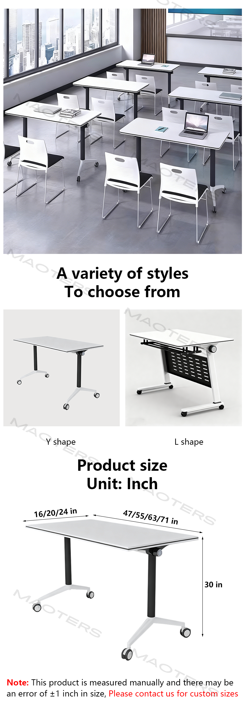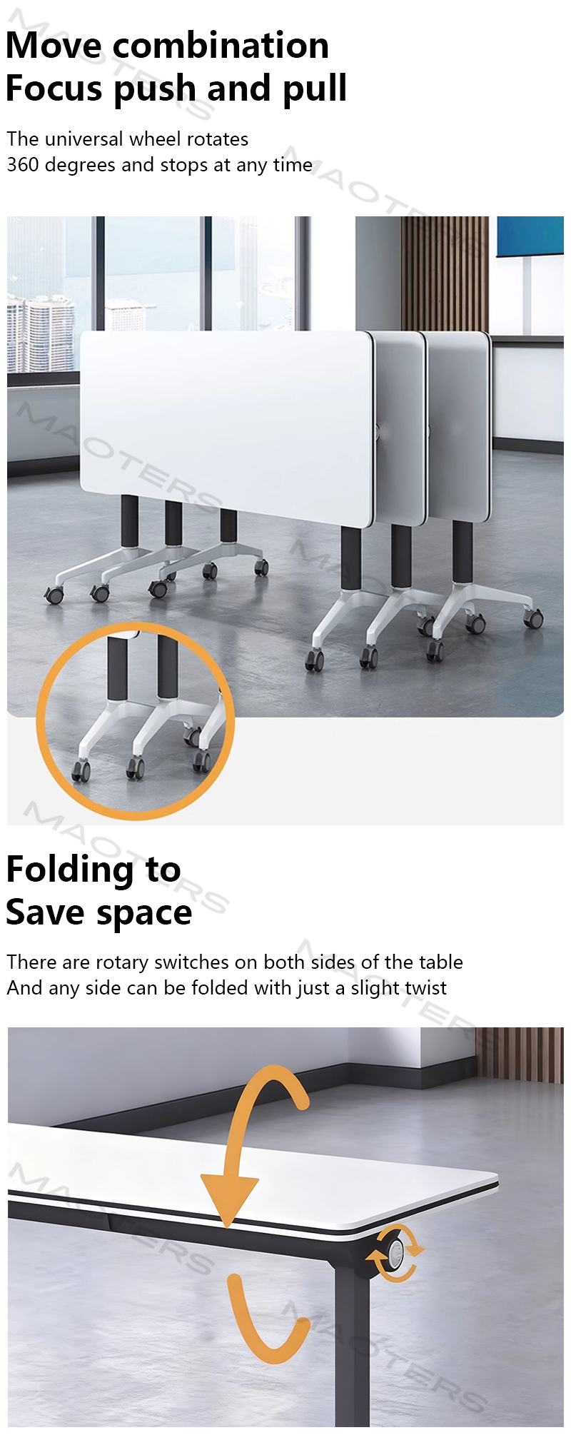 Free Combination: Modular design is a core highlight. Individual rectangular or trapezoidal tables can be used independently, or quickly combined side-by-side, docked, or arranged in a ring to form long conference tables, large training tables, U-shaped discussion areas, or individual workstations, meeting the needs of different scenarios and group sizes.