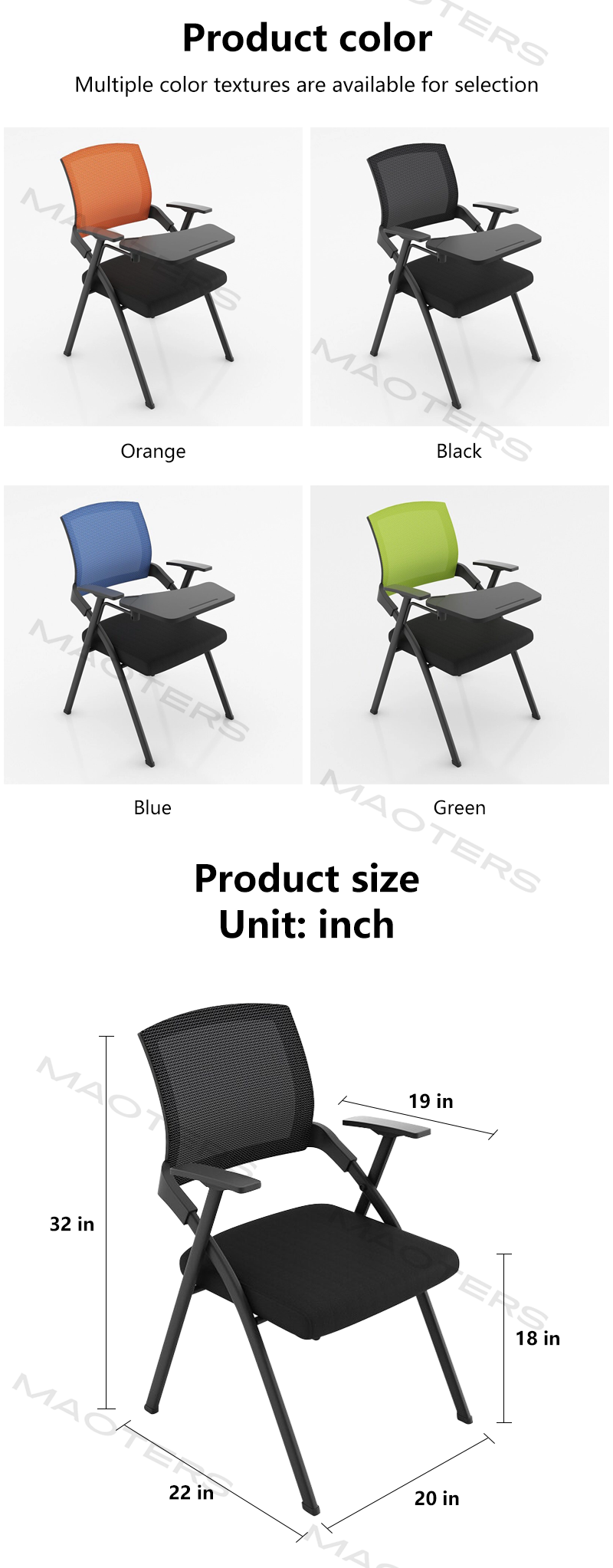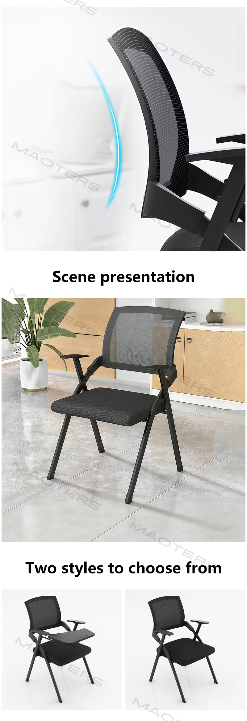 Ergonomic Curve Backrest: Even with the folding design, the backrest still conforms to the natural curvature of the human spine, providing basic lumbar support to meet the comfort needs of 1-3 hour meetings or training sessions.