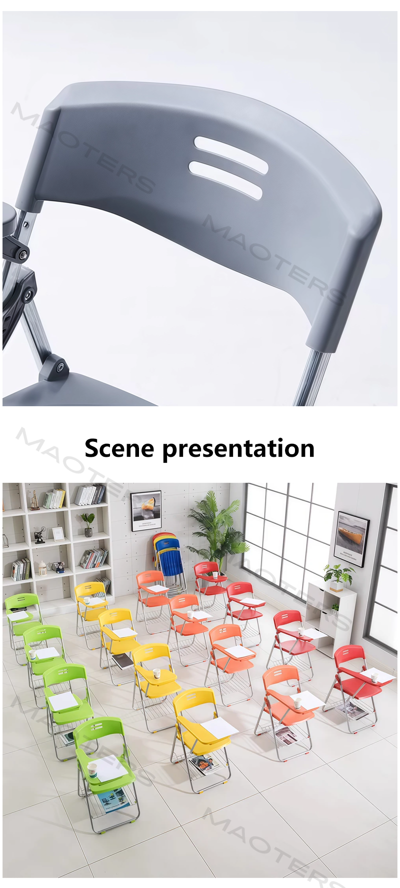 Quick Flip Design: The right side integrates a rotating writing board that fits snugly against the chair when not in use and easily flips to the front when needed, providing a smooth and natural transition.