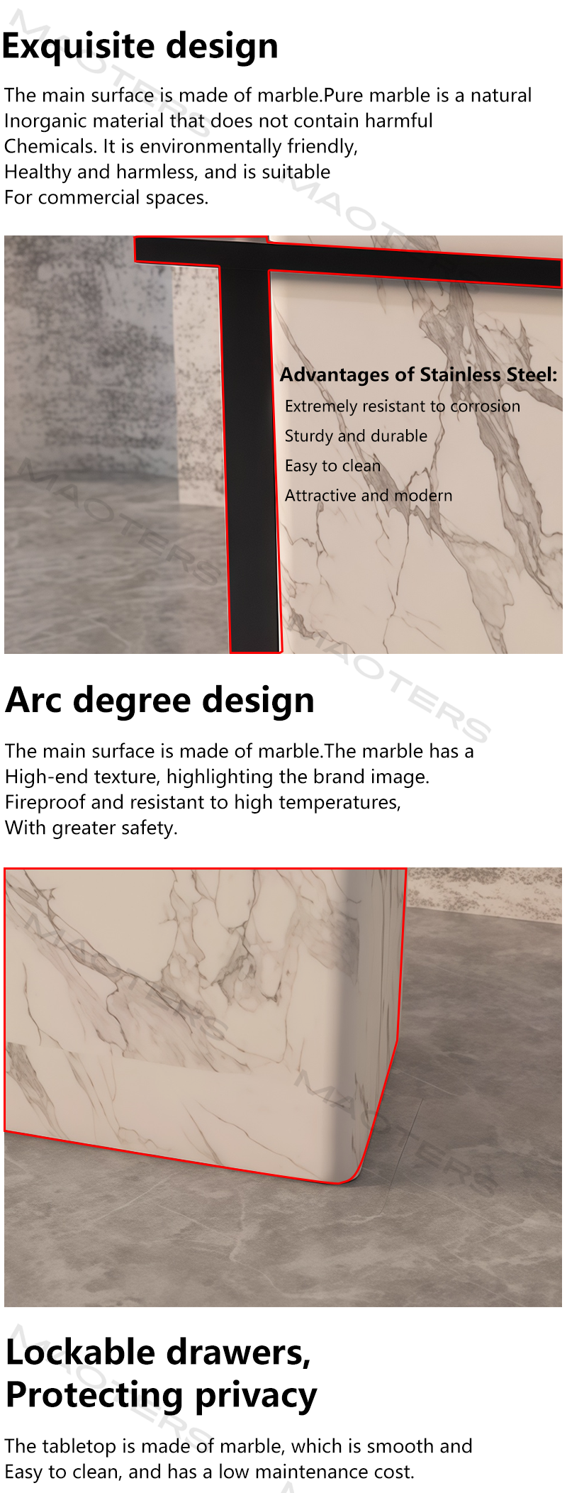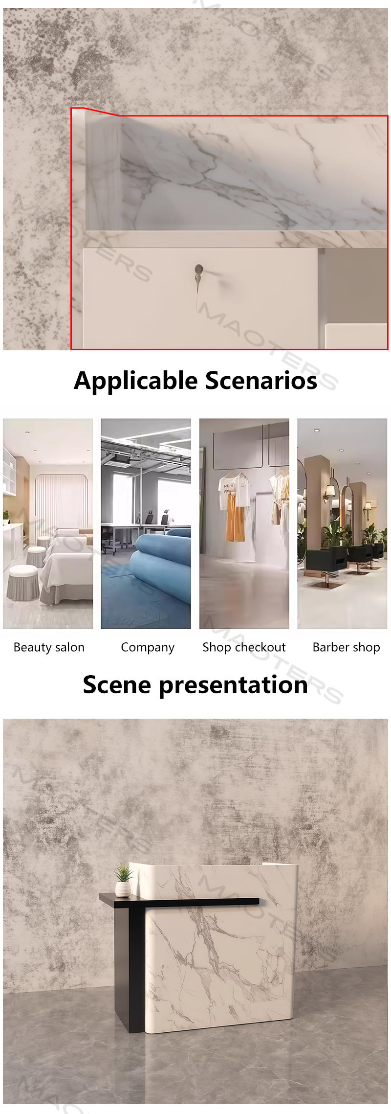The bar counter top is made of high-quality imitation stone material, which closely mimics the texture and color of natural stone such as marble, granite, etc. It has a natural and delicate texture, presenting an elegant and luxurious visual effect. For example, some imitation stone bar counters have the unique veining of marble, which is both beautiful and high-grade.The overall design is in line with the light luxury style, which combines modern minimalist elements with a sense of luxury. It does not pursue overly complicated carvings and decorations but shows a noble and elegant temperament through simple lines and smooth surfaces. The color matching is also relatively elegant, often using neutral colors such as white, gray, and beige, which can easily match with various interior decoration styles.