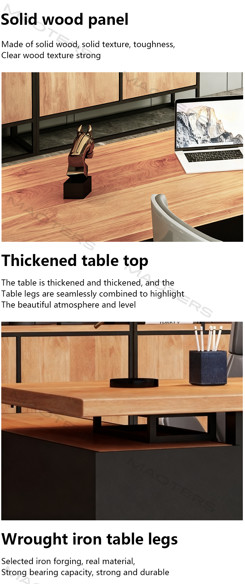 Elevate your workspace with the Maoters Industrial-Style Solid Wood Executive Desk—a perfect blend of rugged charm and refined functionality. Crafted from premium solid wood, this desk boasts exceptional durability and a timeless aesthetic, making it ideal for modern offices, home workspaces, or executive suites.