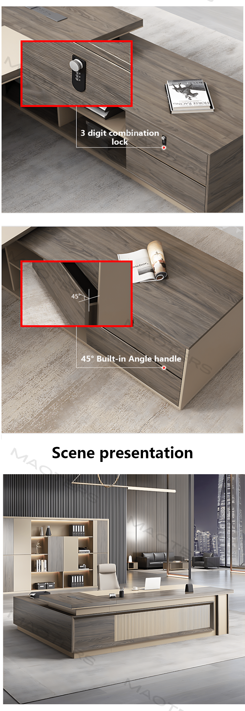 L-Shaped Executive Desk with Drawer & Storage