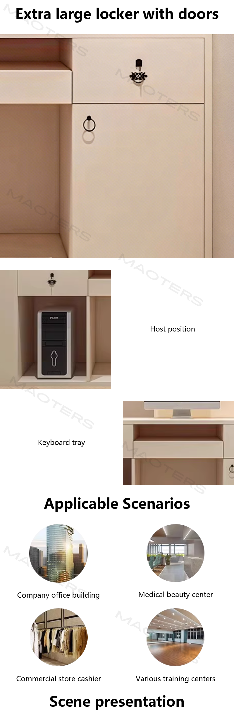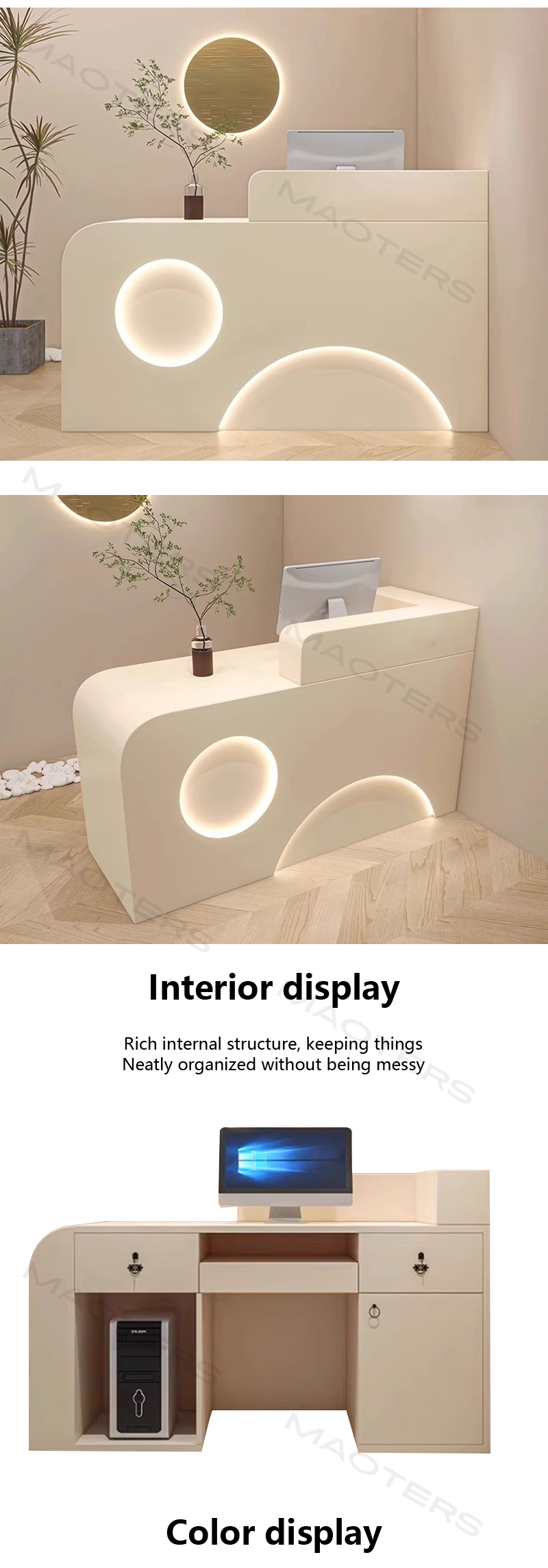 This reception desk is a perfect match for my nail salon.It's even more beautiful in person than in the photos.The drawers and storage space are cleverly designed,making it convenient for me to store receipts,membership cards,and everyday items,keeping everything clean and tidy.Its modern and stylish design blends perfectly with the overall decor.I am extremely satisfied with this purchase.