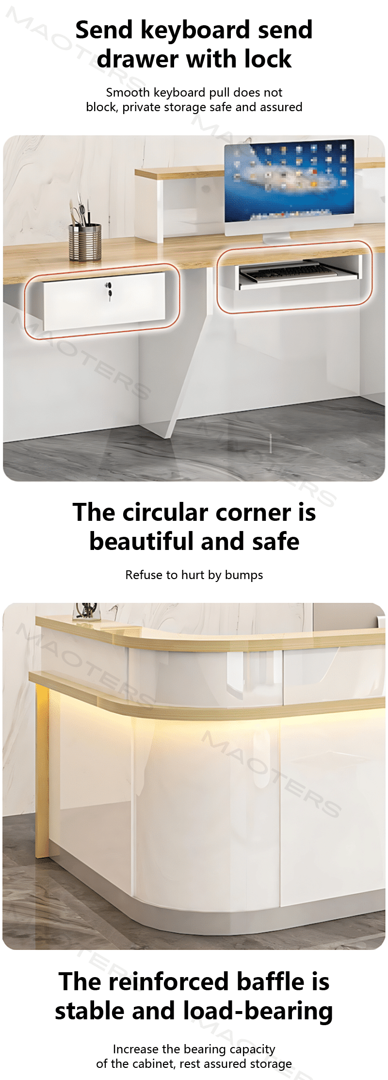 - Modern & Professional Design – With its sleek and clean design, this reception desk seamlessly fits into a variety of office environments, enhancing your office’s professional ambiance.