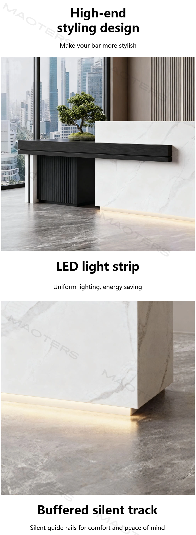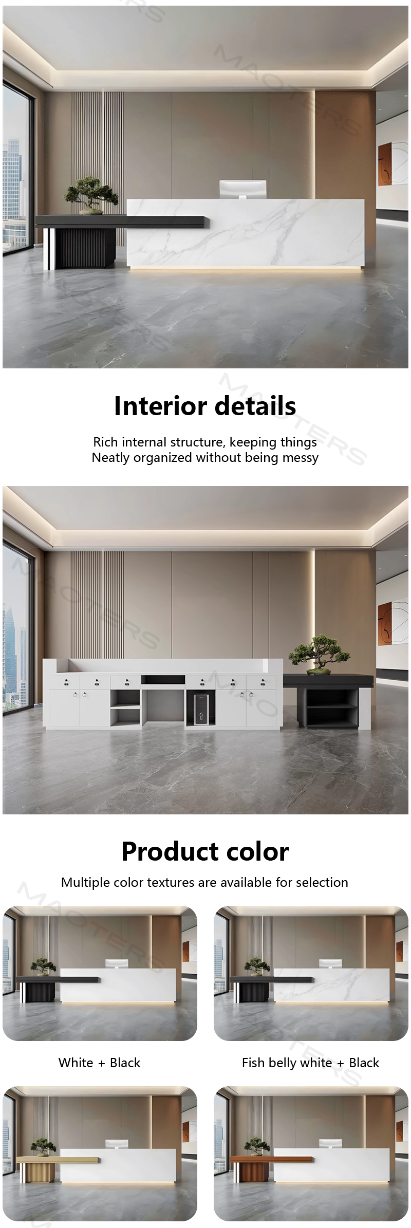 The Large Storage Space Entrance Reception Desk is designed to provide both a functional workspace and ample storage, making it ideal for busy offices, hotels, or any business requiring a well-organized reception area. With its modern aesthetic and spacious layout, this desk offers an elegant and professional welcome to visitors while keeping your office essentials neatly stored. The desk features generous compartments, drawers, and open shelves, making it easy to keep paperwork, technology, and other items accessible yet out of sight. Designed for efficiency and style, this desk will help streamline your reception operations while maintaining a polished appearance.