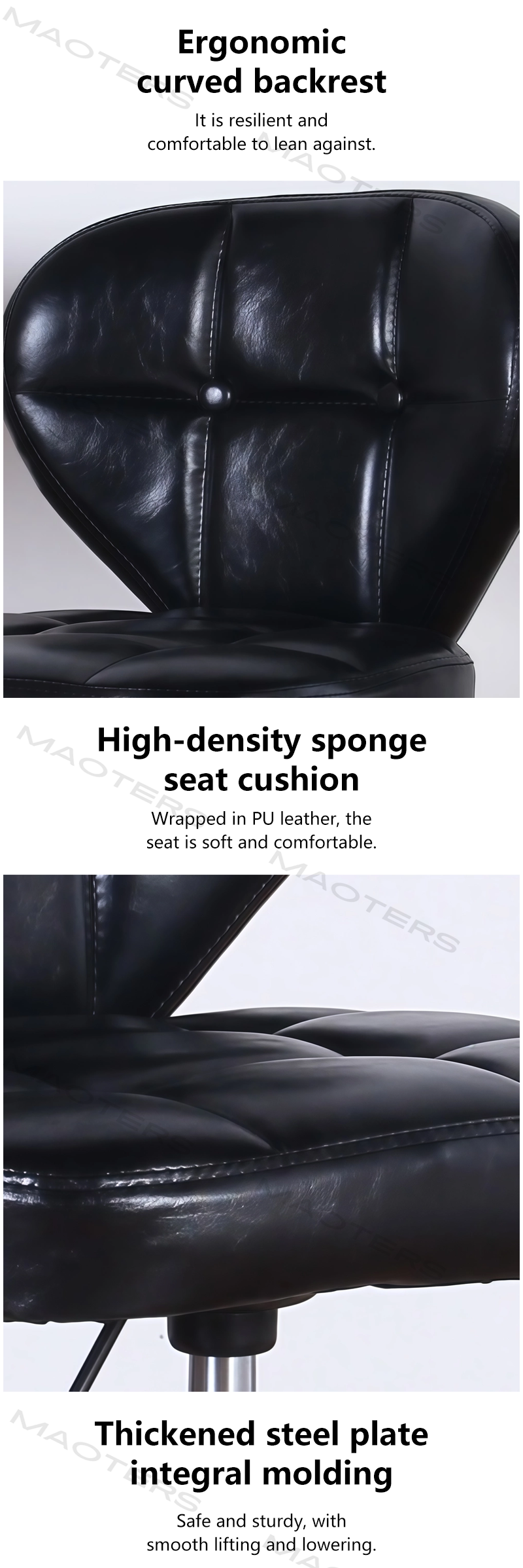 Stable anti-tipping design: Widened and weighted five-star legs or a circular base design provide strong support and stability even during rotation and height adjustment, eliminating the risk of tipping over.