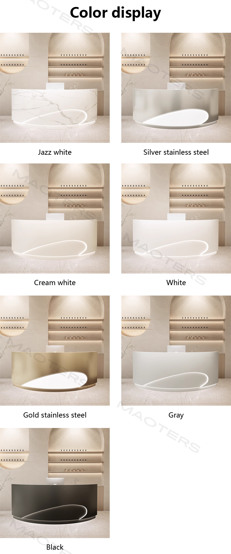 Welcome your clients with effortless sophistication using our Luxury Curved Reception Desk, an exquisite centerpiece designed exclusively for high-end salons, medspas, and wellness centers. This gracefully curved counter combines organic fluidity with contemporary elegance, creating a welcoming atmosphere that reflects your brand’s commitment to luxury and comfort.