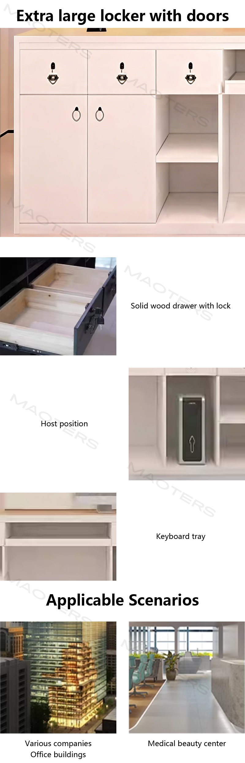 I was looking for a reception desk that combines style with durability,and this one is perfect!The paint job is exceptional,and the desk is built to last.The structure is super stable,and it can hold a lot of items without any wobbling.It's also resistant to water and rust.Shipping was fast,and the customer service team was amazing.