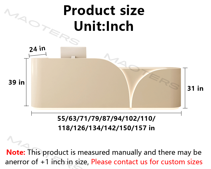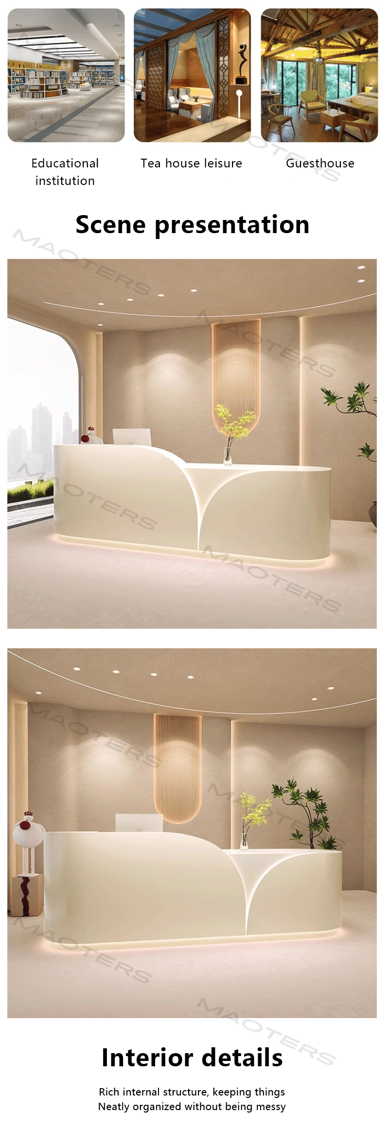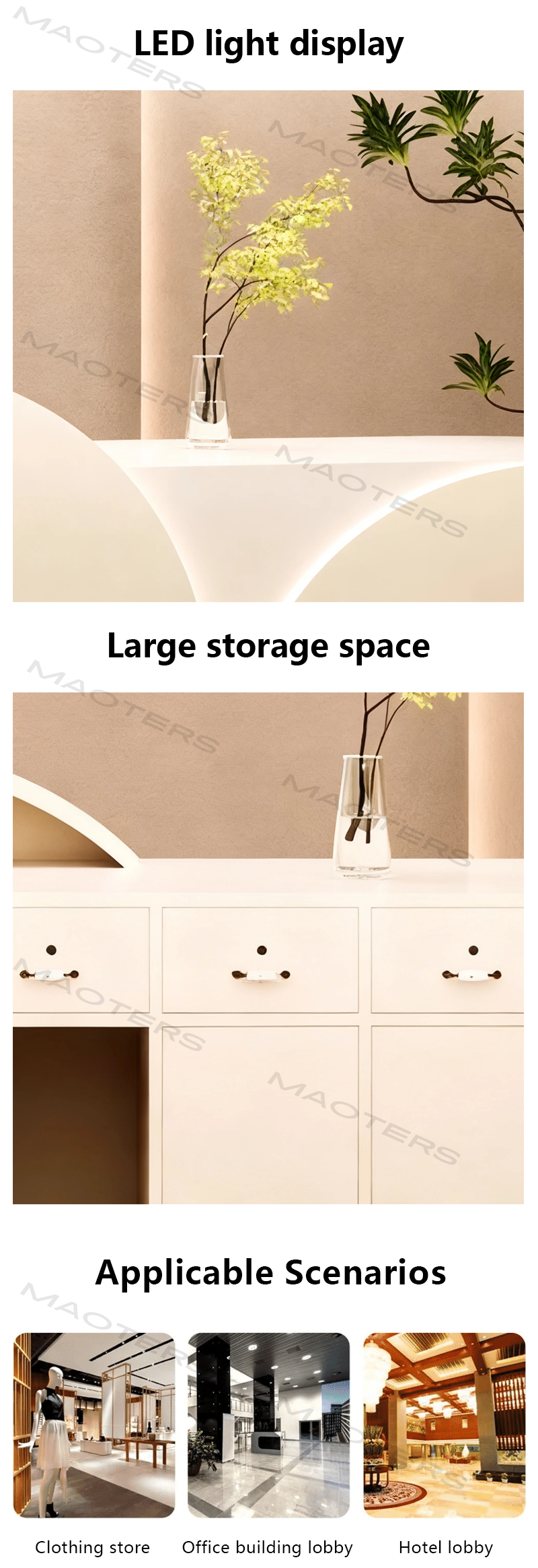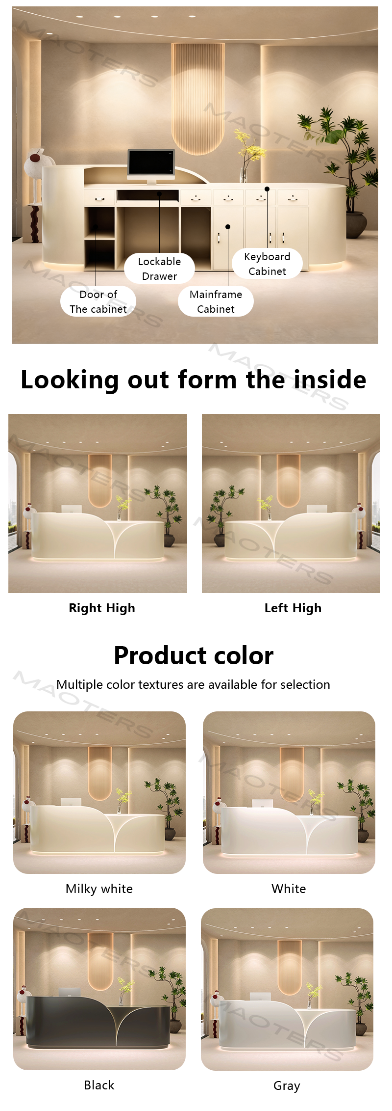The Maoters Retail Reception Desk combines stylish design with exceptional functionality, making it an ideal choice for any retail environment. Perfect for boutiques, stores, or showrooms, this desk offers a contemporary look with clean lines and a sleek finish. The spacious design provides ample room for transactions, customer interactions, and organizational tasks. Crafted from high-quality materials, the desk ensures durability and ease of maintenance, making it a reliable addition to your business. With customizable size, color, and finish options, this desk is tailored to fit your store’s unique style while offering a welcoming, professional atmosphere.