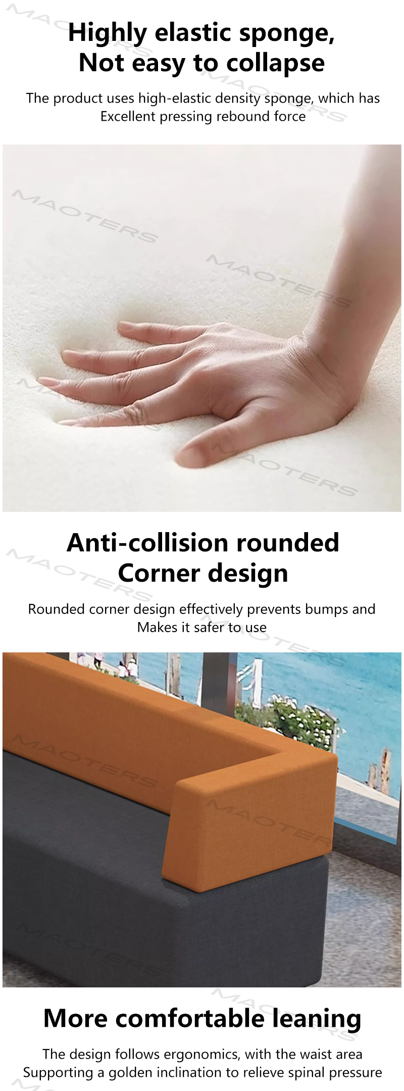 Made from select durable blended fabrics, each color block boasts a delicate texture and neat stitching, ensuring both beauty and longevity. The modular base design offers flexible combinations, perfectly adapting to various apartment layouts and needs. The seat cushions are filled with high-elasticity foam, providing just the right amount of comfortable support.