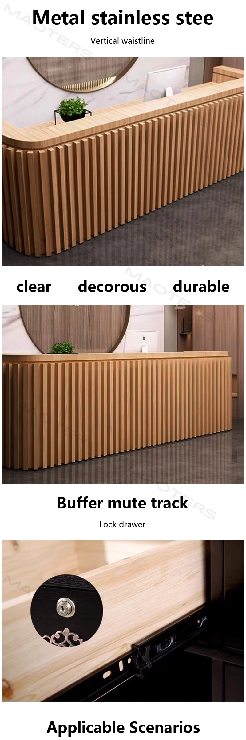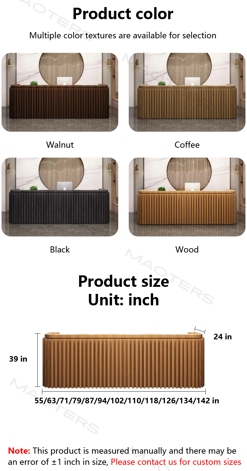 This desk is a game changer!I love how I could fully customize the size and color to fit both my salon and office space.The minimalist design looks chic in any environment,and I've received so many compliments from clients.A friend recommended it to me,and I'm so glad I listened!Highly recommend for anyone needing a stylish yet functional reception desk.