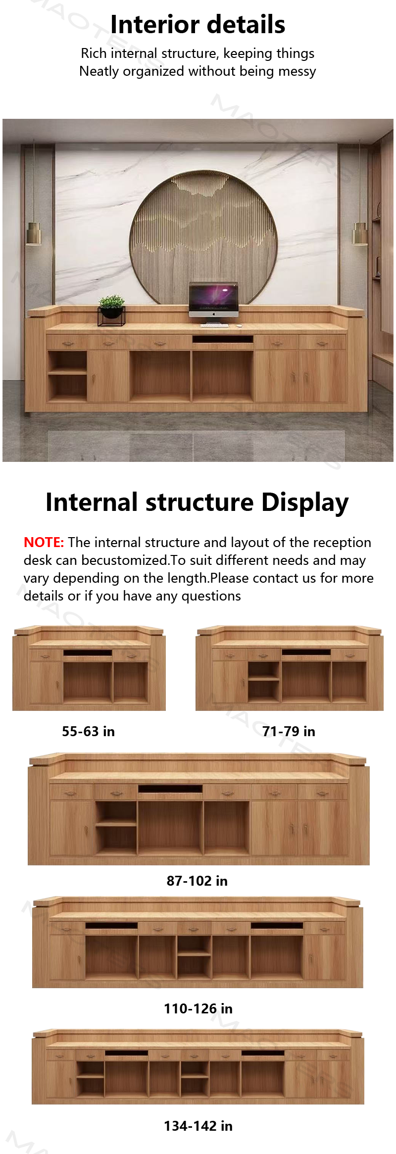 I bought this reception desk for our studio,and it looks amazing!The design is sleek and modern,with a minimalist design and natural wood finish,perfectly complementing the space.The desk is incredibly durable,and every detail shows quality.It also provides ample storage for all our reception supplies.Shipping was also incredibly fast,so I didn't have to worry about it.I'm completely satisfied with my purchase!