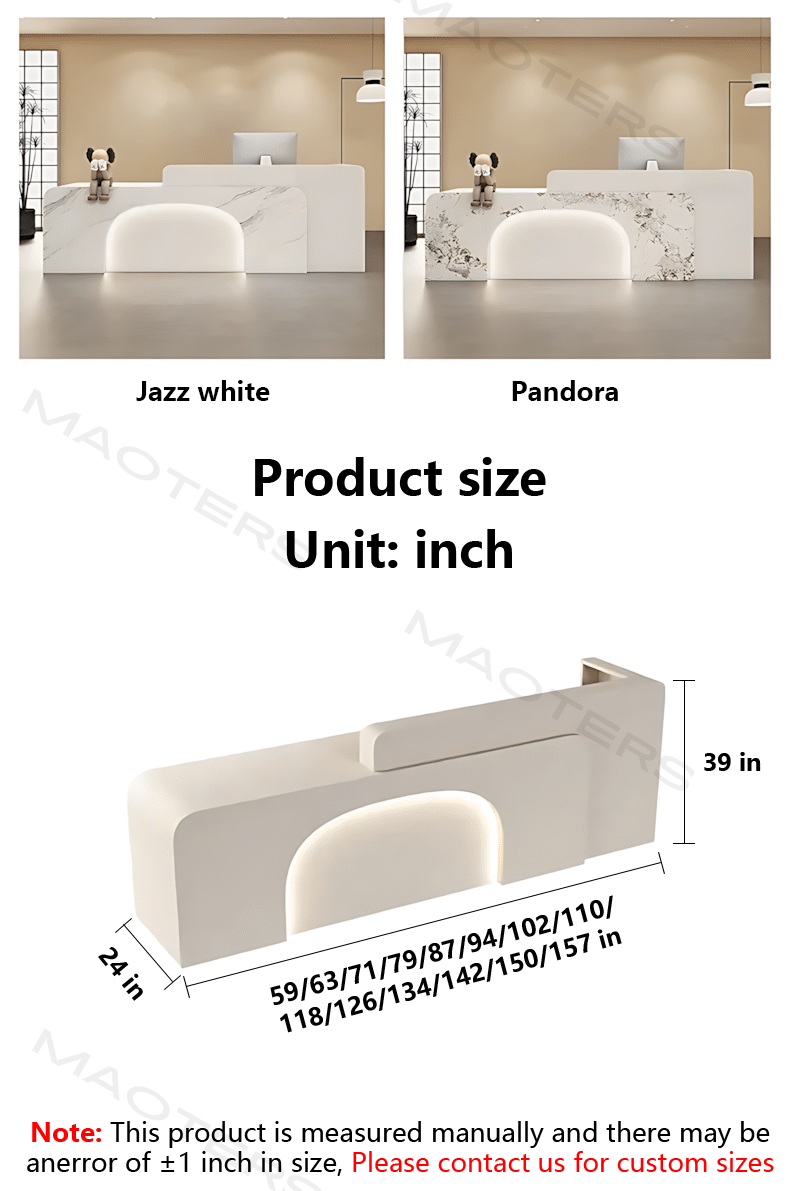 The dimensions are precise,the workmanship is excellent,and it's very easy to use.The price is reasonable,but the appearance and texture are even better than I expected.I think it's a very impressive reception desk that truly enhances the atmosphere of my office.For this quality and price,it's excellent value for money.I will definitely buy it again.