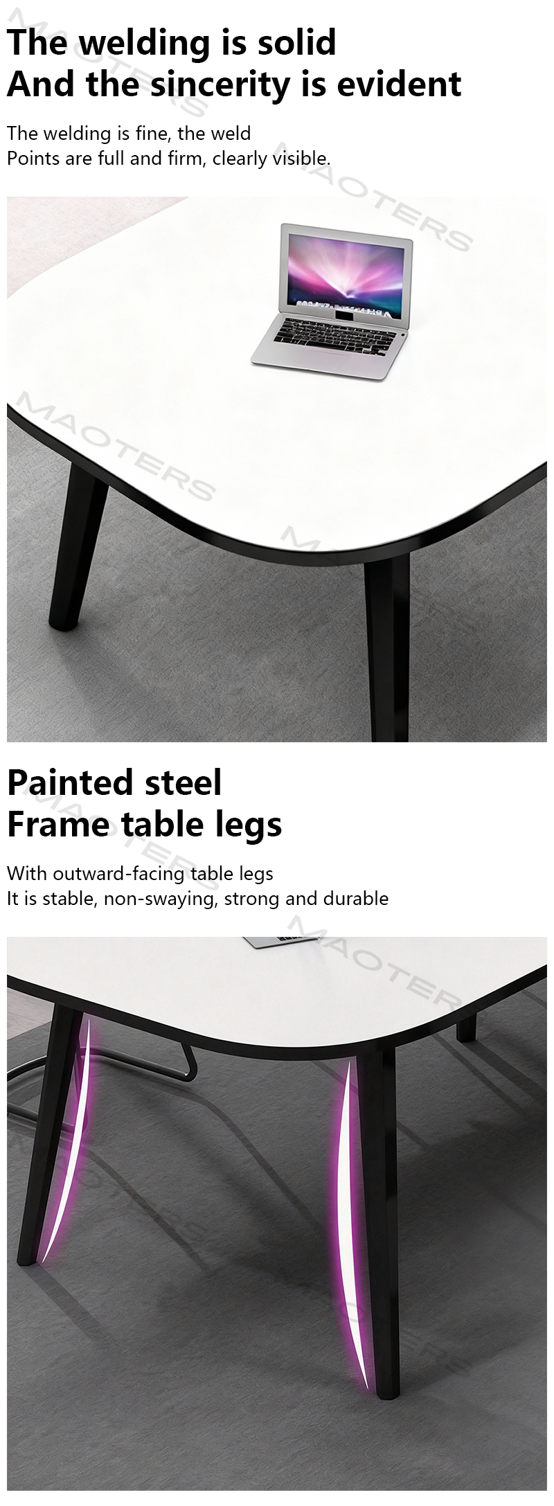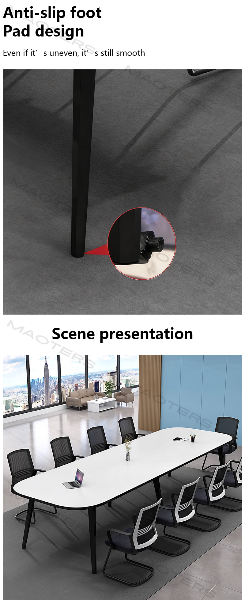 This conference table is made of exquisite materials and is exquisite and durable, making the conference room more high-end. The conference table has a unique design that conforms to the modern office style and is also very practical.