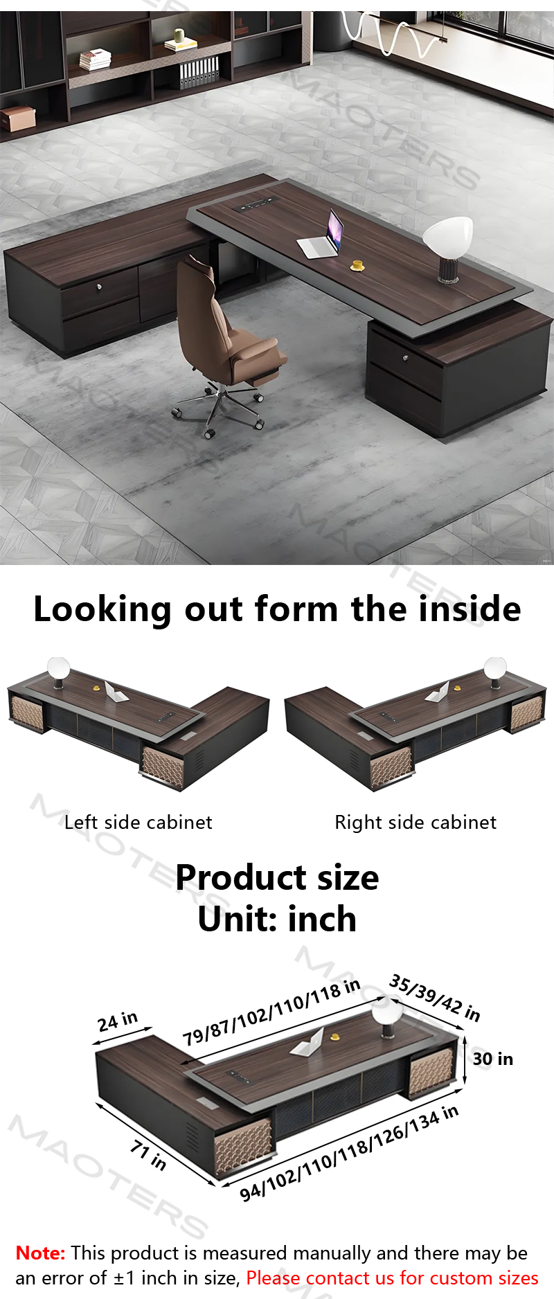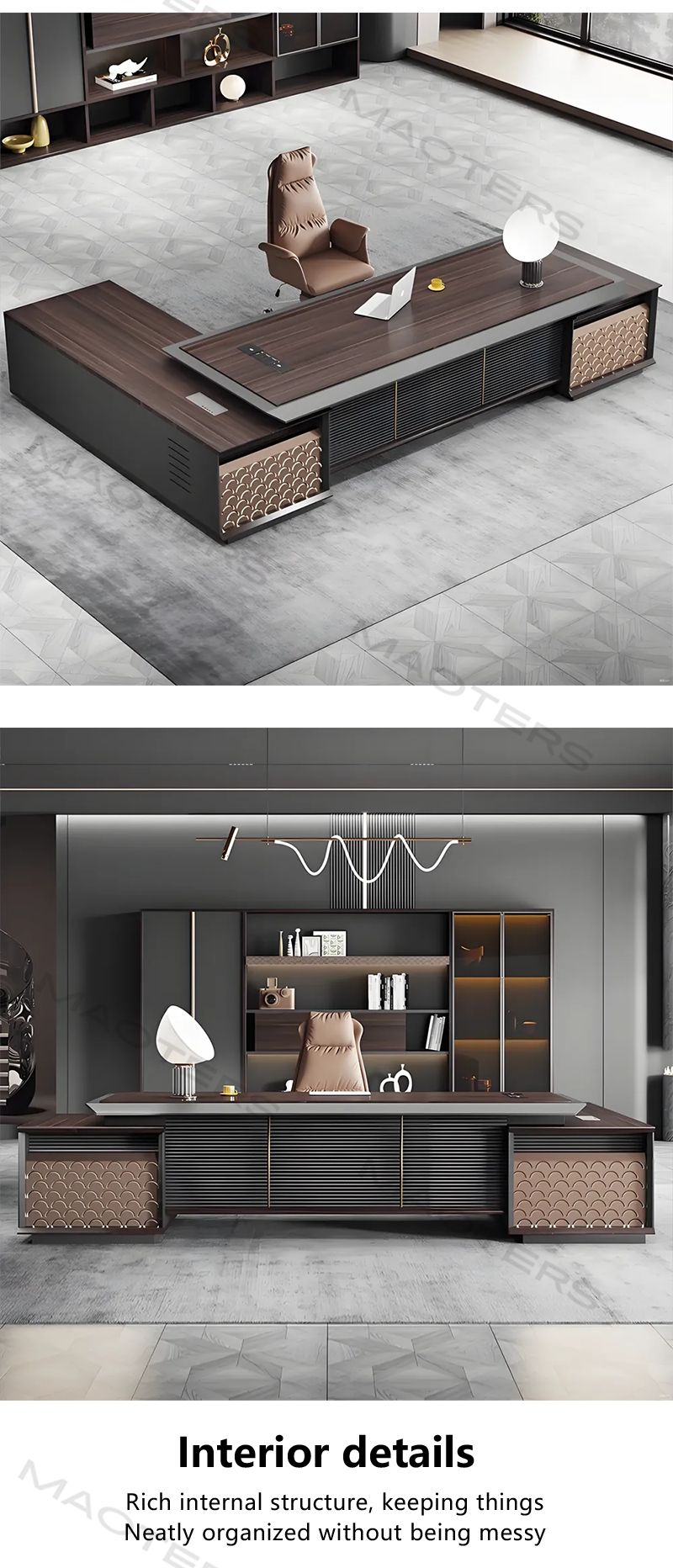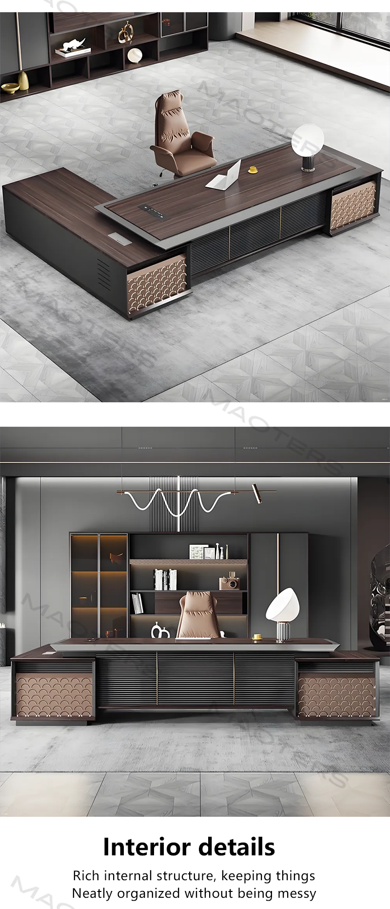 The spacious desktop provides ample room for work, meetings, or stylish decor, while the sturdy construction ensures stability. Designed with a refined “Chairman” style, it combines modern aesthetics with functional excellence, making it perfect for leaders who appreciate both luxury and practicality.