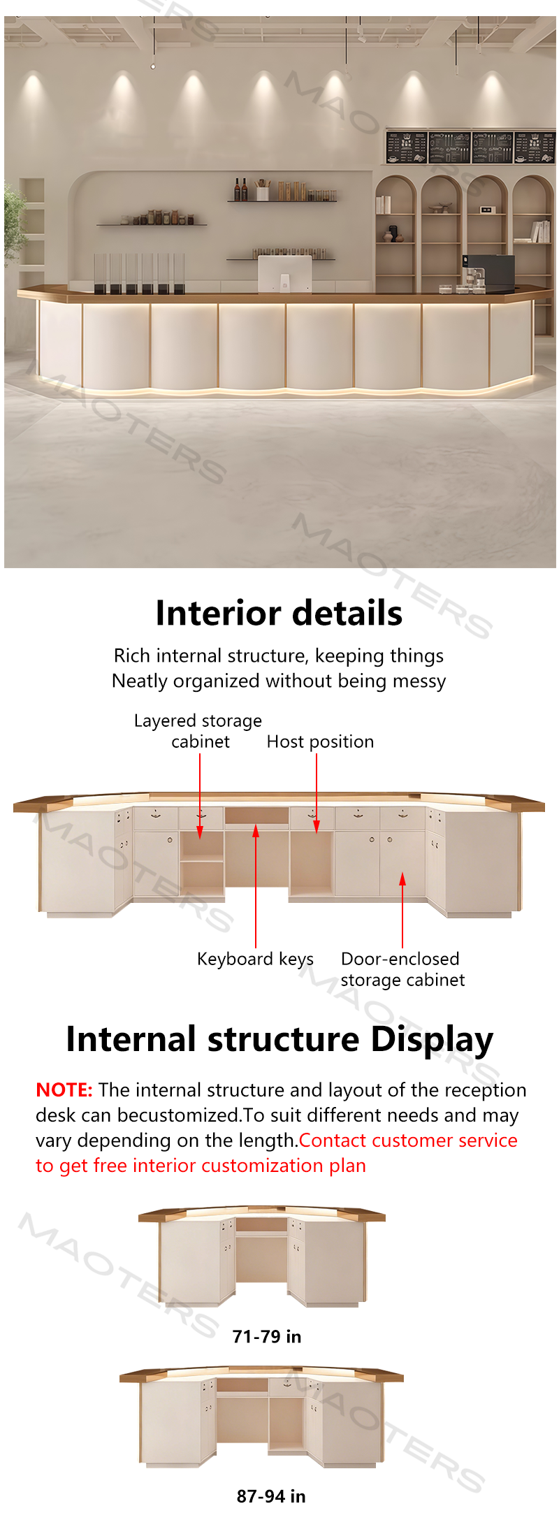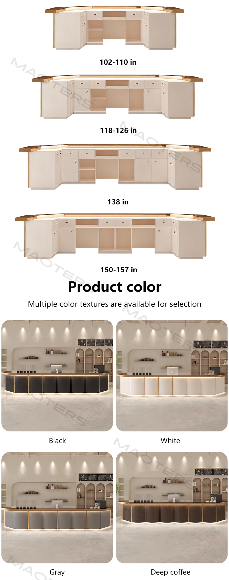 The compact, modular design cleverly integrates reception, order taking, display, and storage functions, maximizing efficiency within a limited space. Whether serving as a cozy coffee bar or a professional reception hub, it blends seamlessly into the environment, becoming a visually comfortable anchor point.