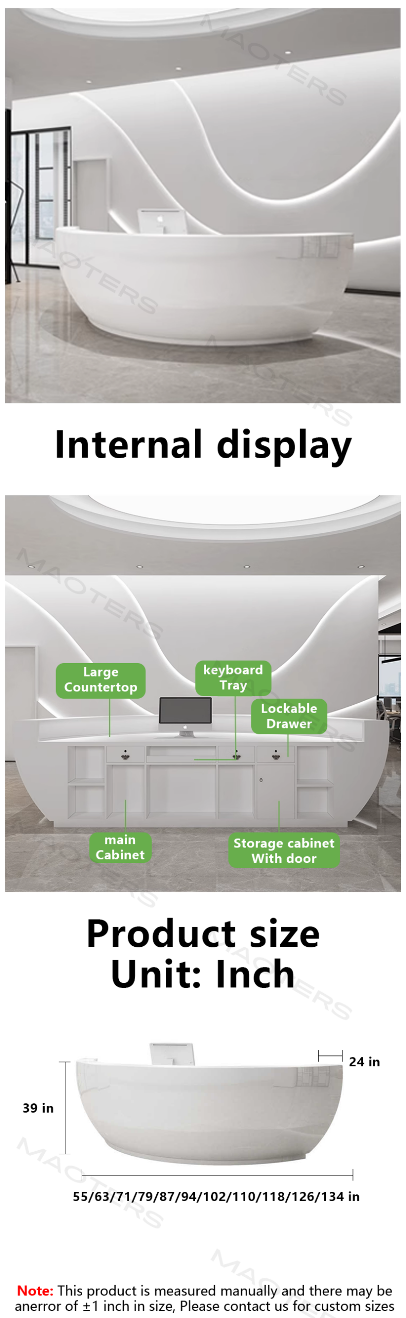Modern Fiberglass Reception Desk – Curved Counter for Office